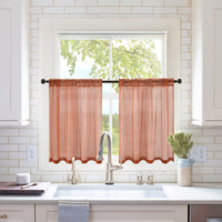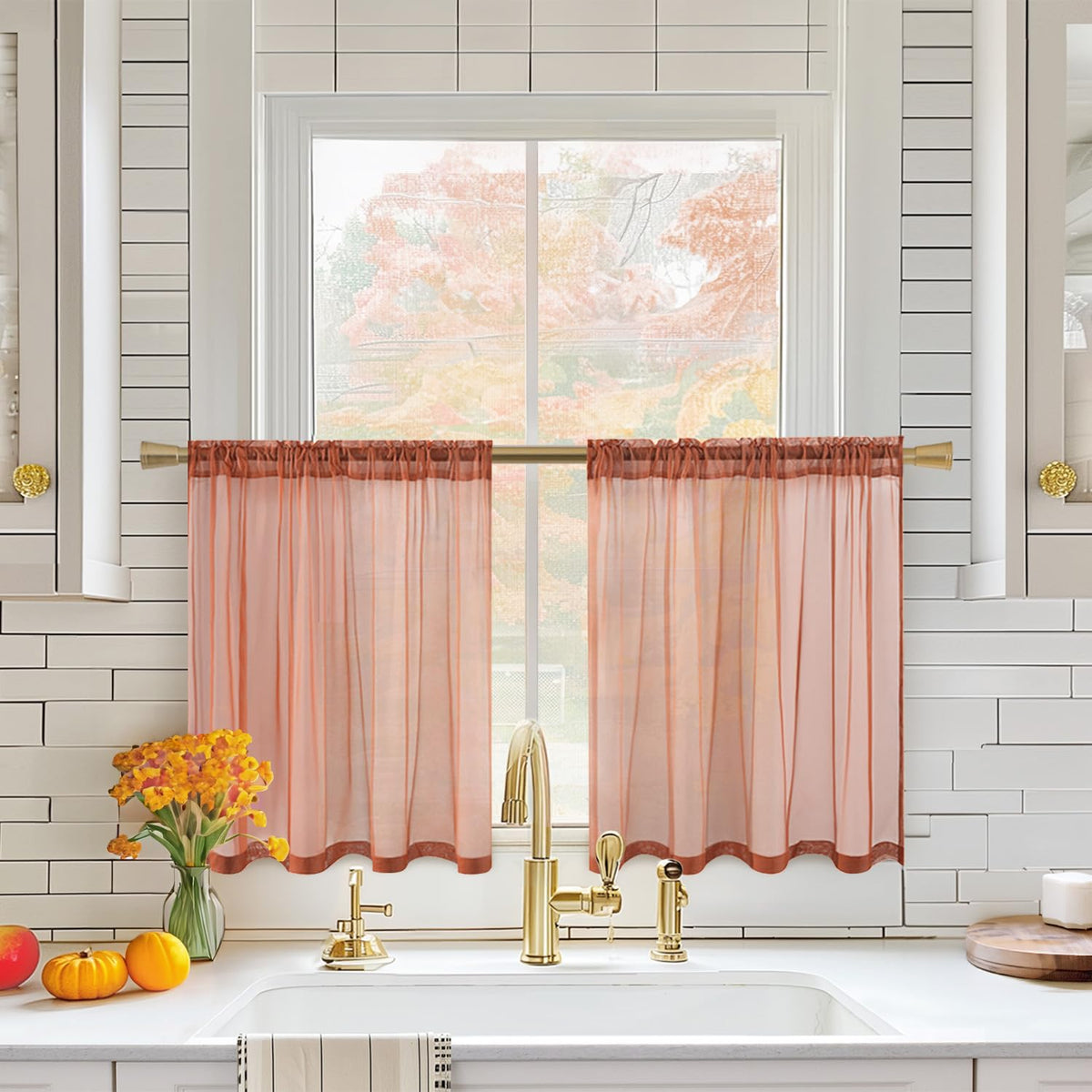 Miulee Short Sheer Curtains 36 Inch Length For Kitchen Bathroom Cafe Half Window Treatment, Terracotta Rod Pocket Tier Fall Curtains 2 Panels 29X36 Inches Long, Burnt Orange