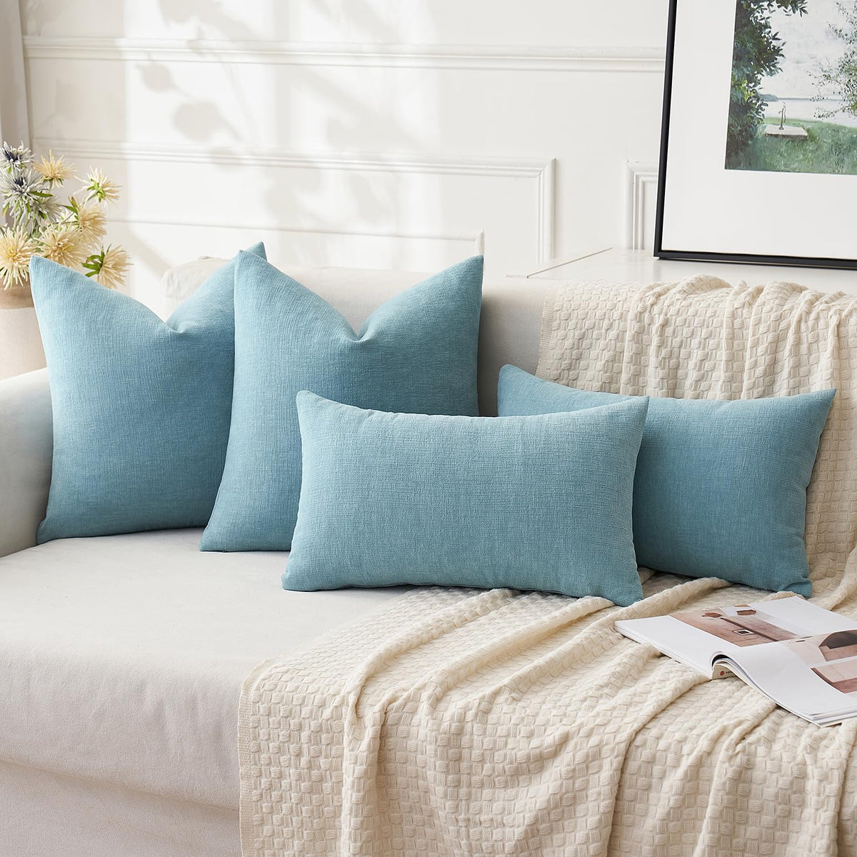 Miulee Smoke Blue Couch Pillow Covers 20X20 Inch, Set Of 2 Soft Chenille Decorative Square Throw Pillow Covers Farmhouse For Sofa Living Room Bed