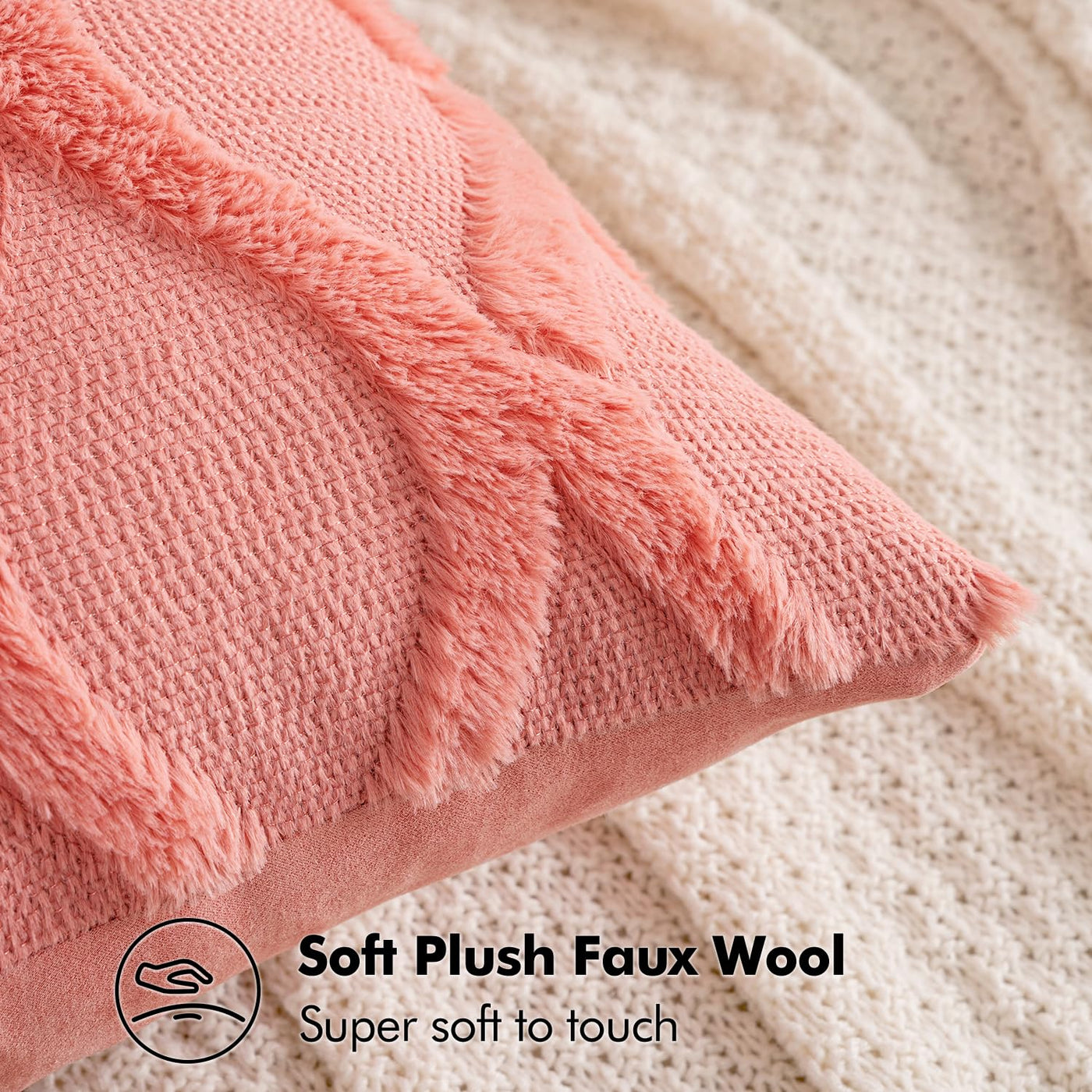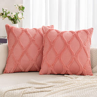 Miulee Spring Decorative Throw Pillow Covers Coral Red 20X20 Inch Set Of 2, Soft Plush Faux Wool Couch Cushion Covers Farmhouse Throw Pillows For Couch Bed Sofa Living Room