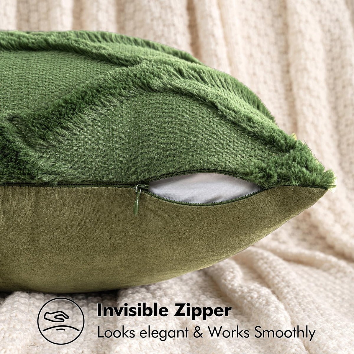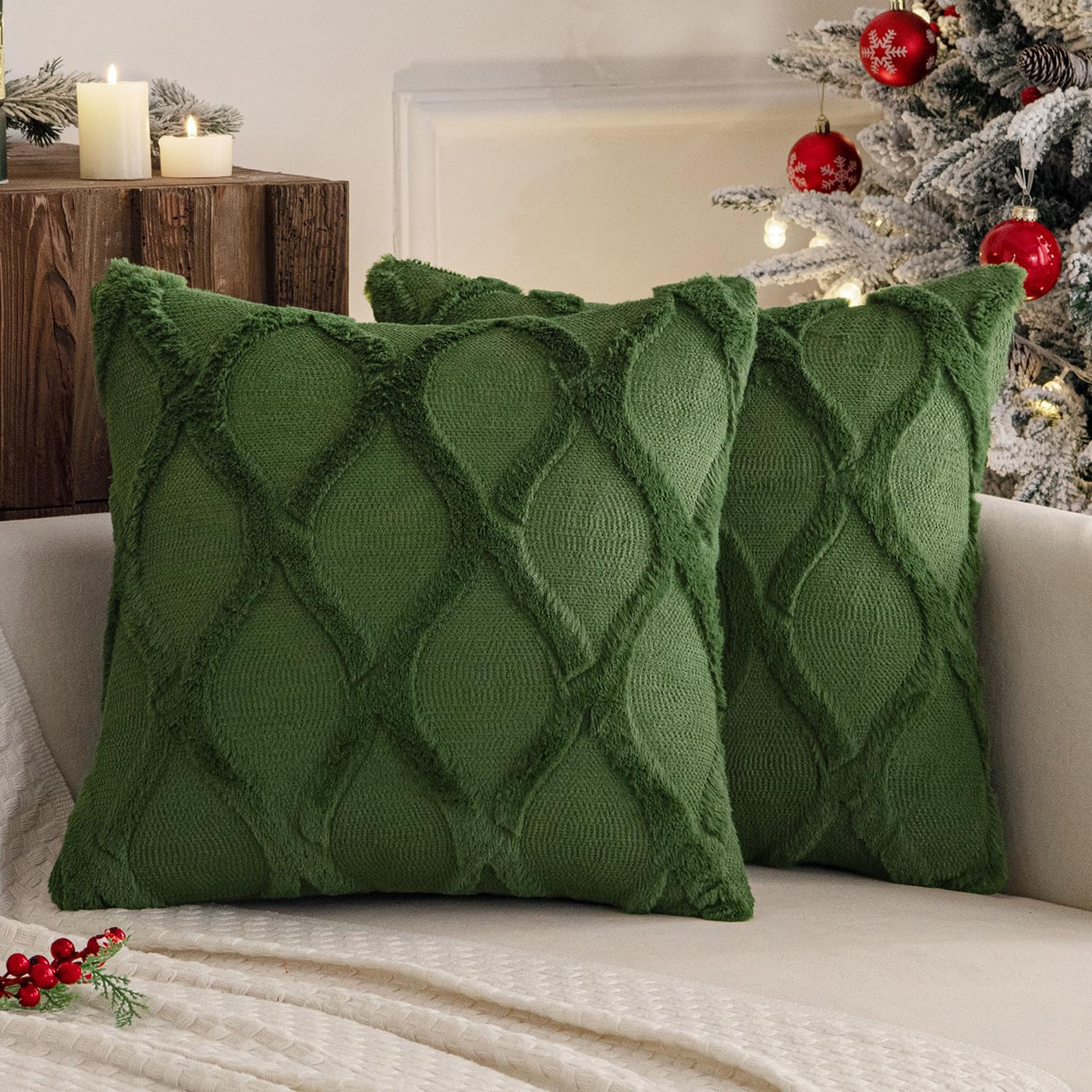 Miulee Spring Decorative Throw Pillow Covers Moss Green 18X18 Inch Set Of 2, Soft Plush Faux Wool Couch Cushion Covers Farmhouse Throw Pillows For Couch Bed Sofa Living Room