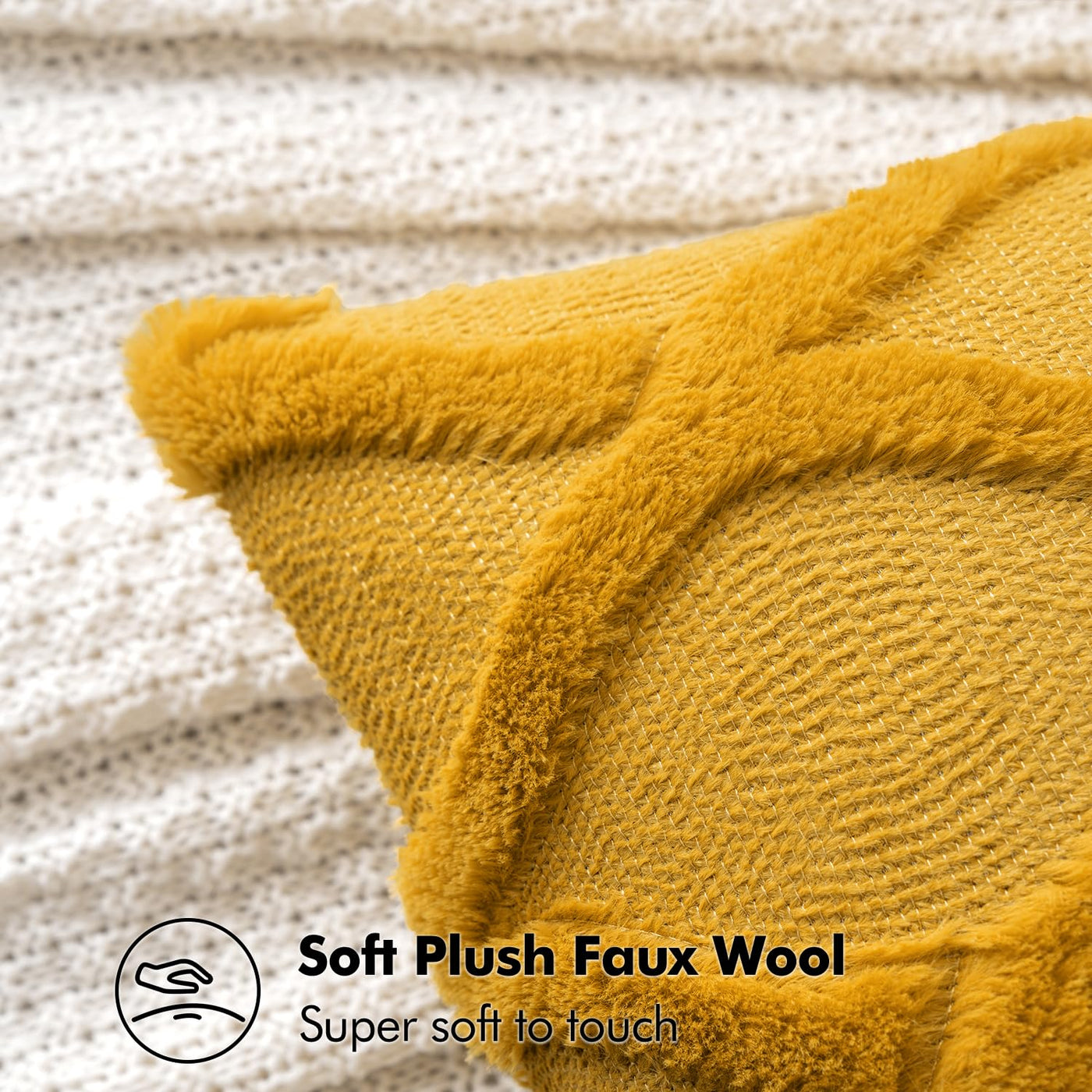 Miulee Spring Decorative Throw Pillow Covers Mustard Yellow 20X20 Inch Set Of 2, Soft Plush Faux Wool Couch Cushion Covers Farmhouse Throw Pillows For Couch Bed Sofa Living Room