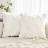 Miulee Spring Decorative Throw Pillow Covers Pure White 20X20 Inch Set Of 2, Soft Plush Faux Wool Couch Cushion Covers Farmhouse Throw Pillows For Couch Bed Sofa Living Room