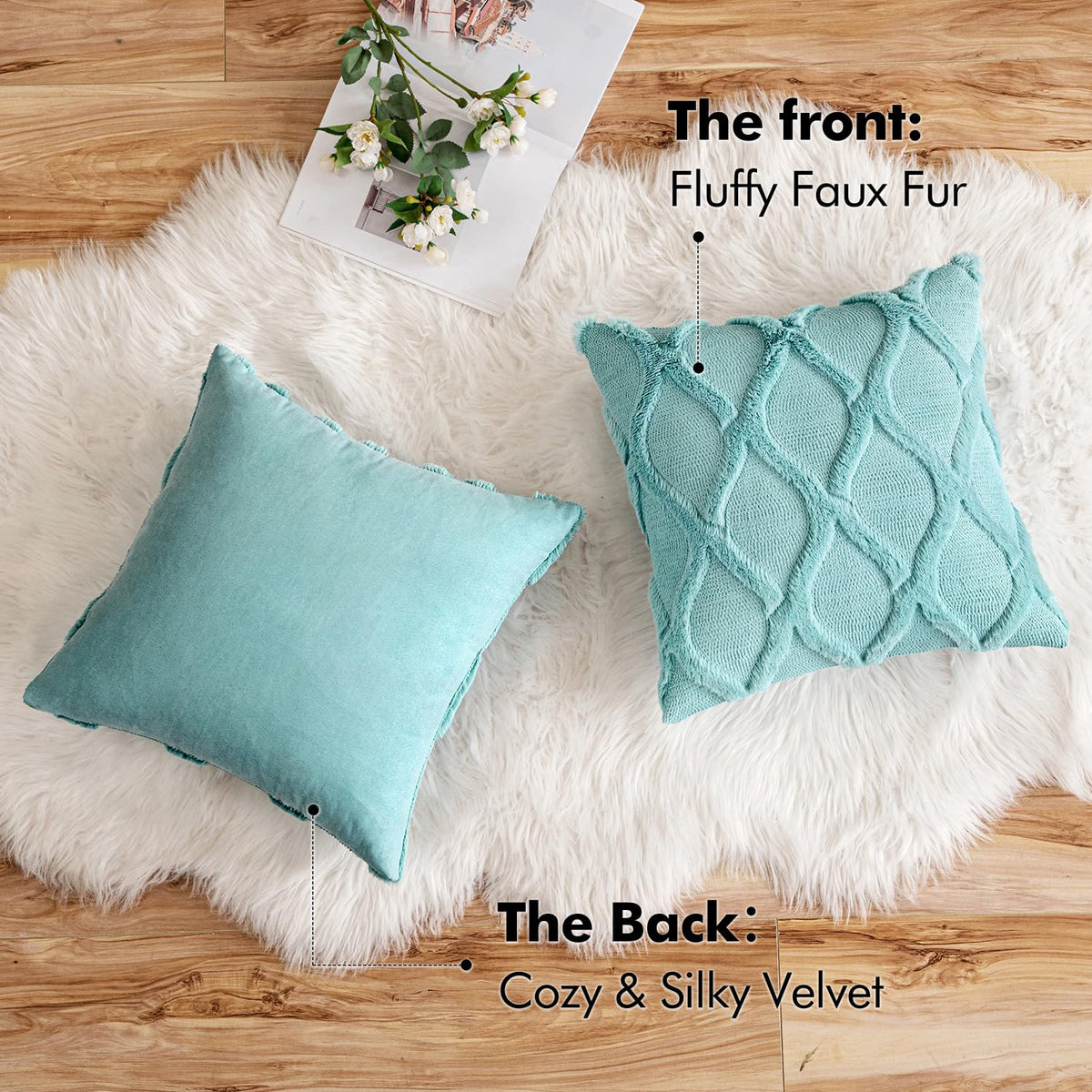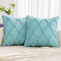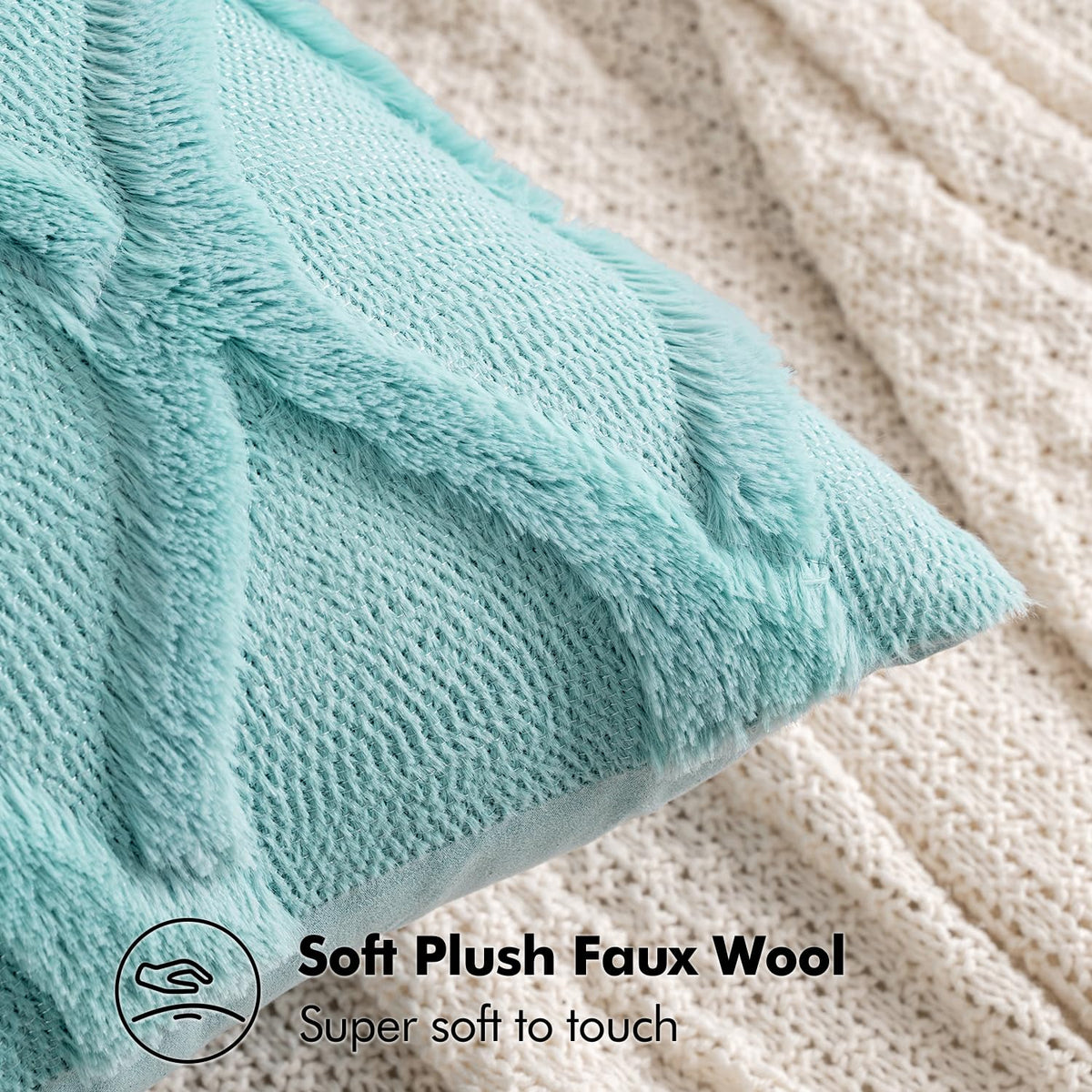 Miulee Spring Decorative Throw Pillow Covers Sky Blue 18X18 Inch Set Of 2, Soft Plush Faux Wool Couch Cushion Covers Farmhouse Throw Pillows For Couch Bed Sofa Living Room