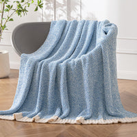 Miulee Super Soft Throw Blanket For Couch, Blue Cozy Fluffy Warm Blankets Lightweight Knit Throw Blankets For Sofa, Bed, Chair,