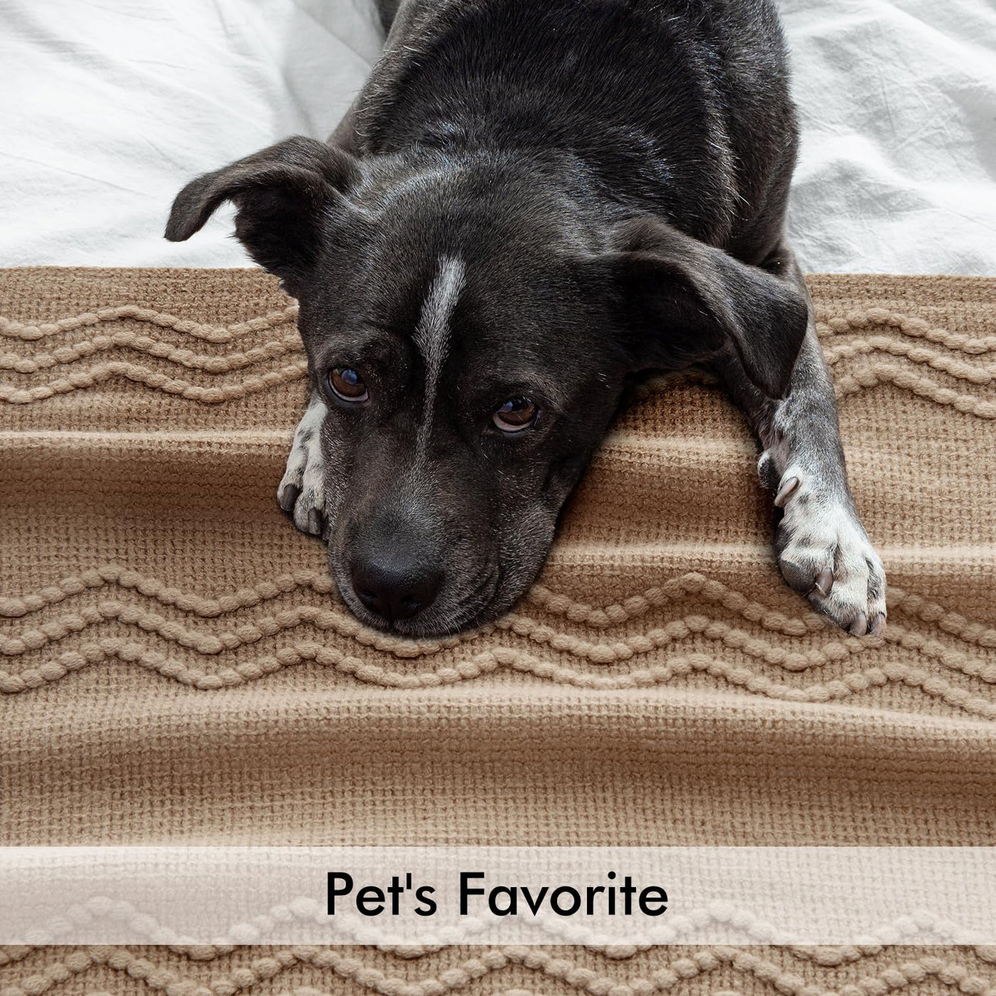 MIULEE THROW BLANKET: 50'x60' tan blanket is made of cozy weave fabric which has good comfort and breathability with cute tassels.