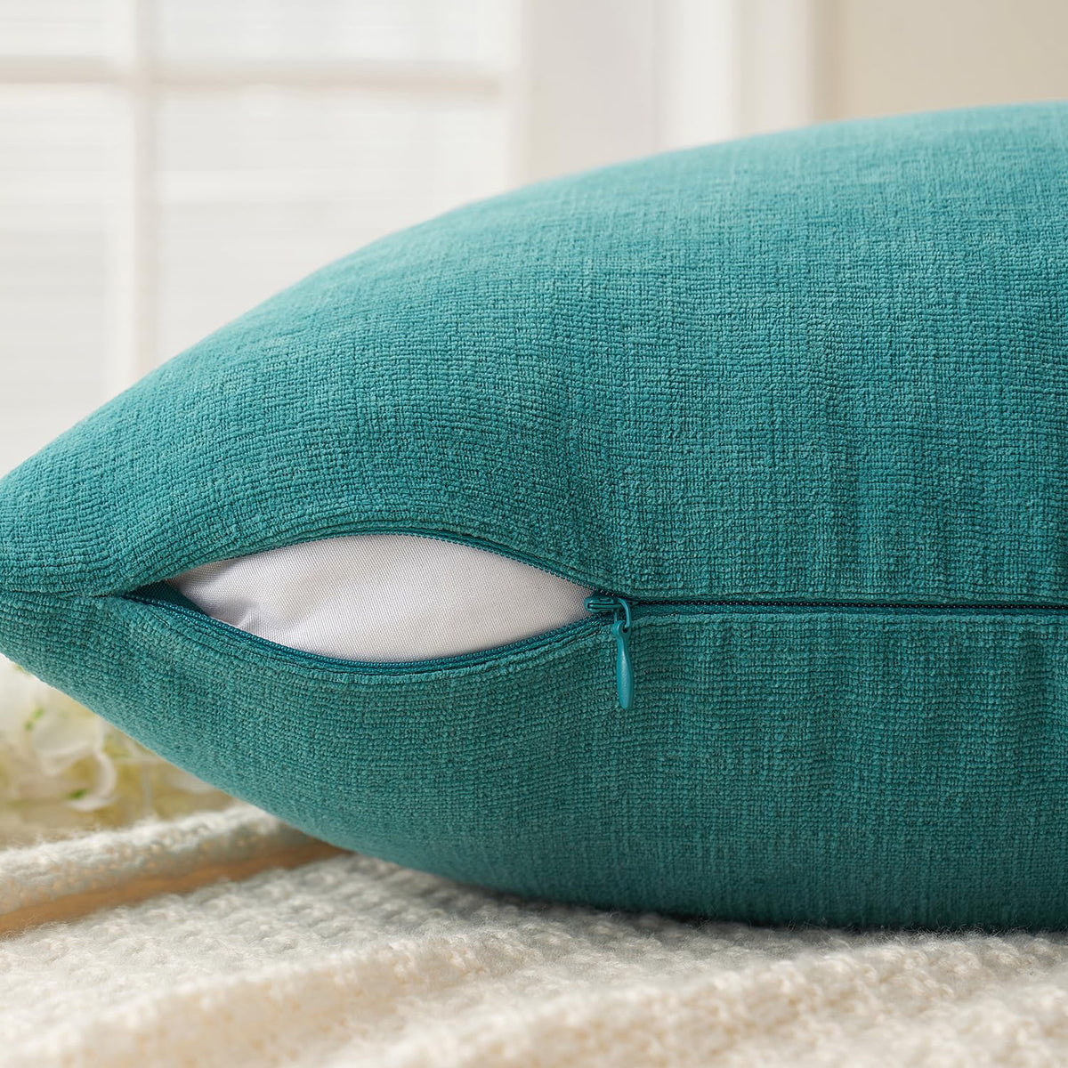 Miulee Teal Couch Pillow Covers 16X16 Inch, Set Of 2 Soft Chenille Decorative Square Throw Pillow Covers Farmhouse For Sofa Living Room Bed