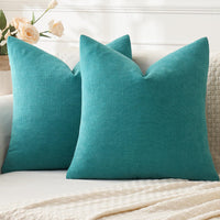 Miulee Teal Couch Pillow Covers 18X18 Inch, Set Of 2 Soft Chenille Decorative Square Throw Pillow Covers Farmhouse For Sofa Living Room Bed