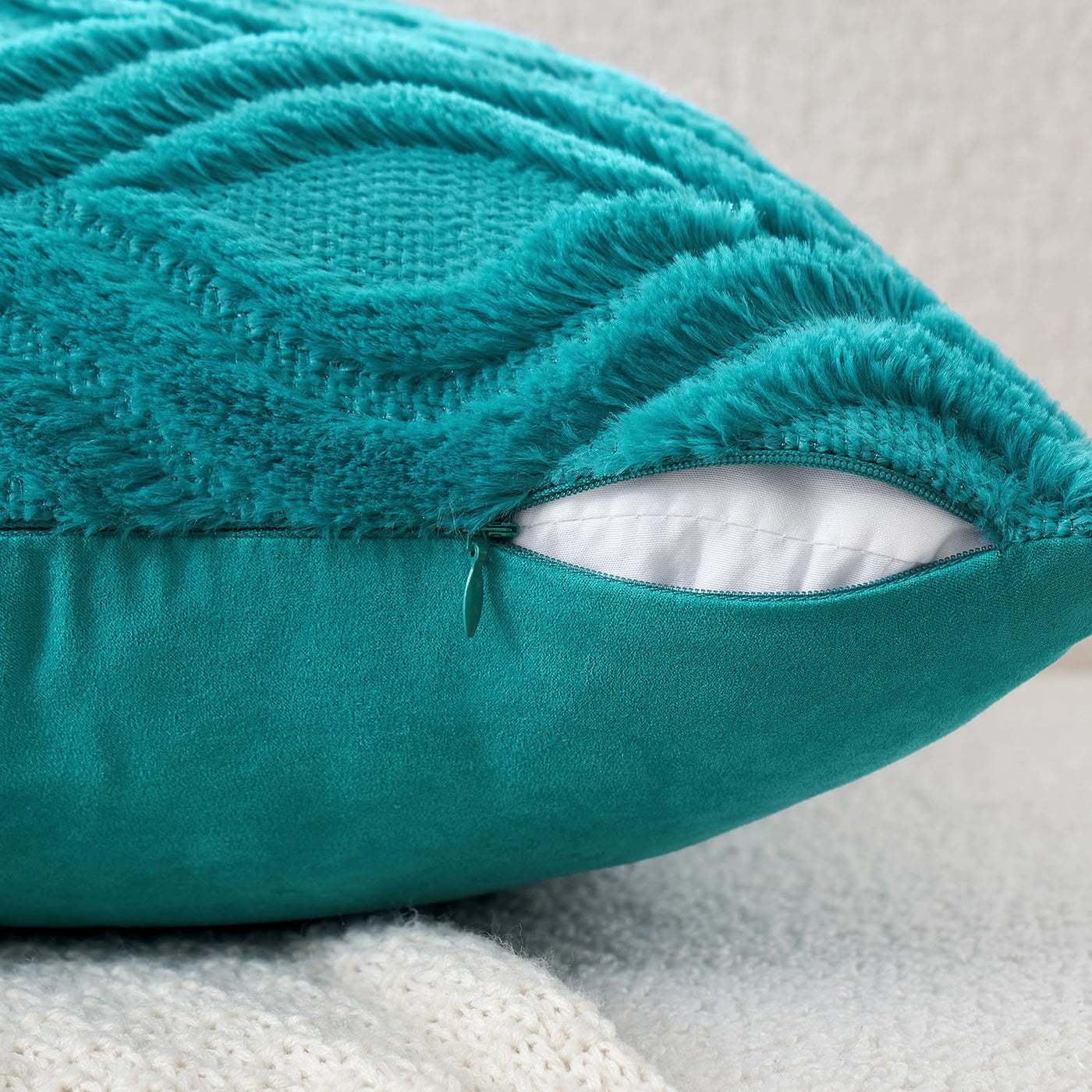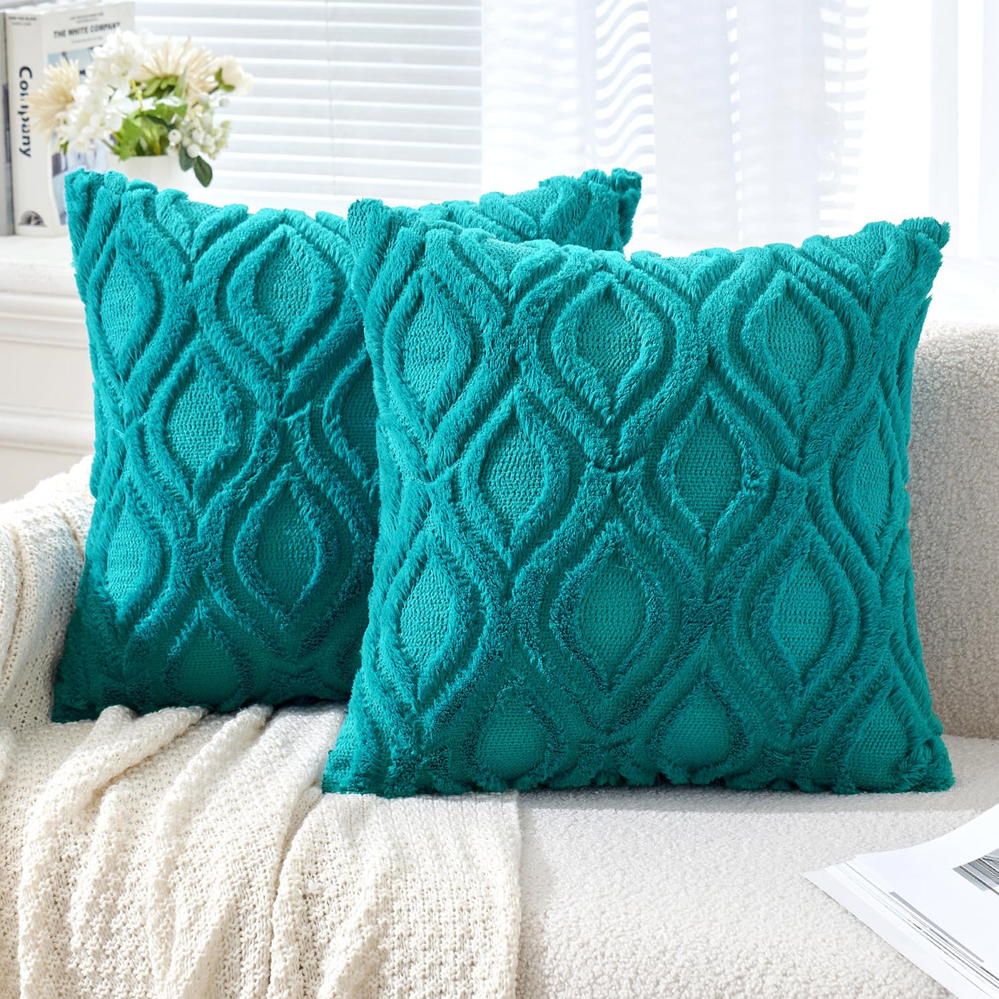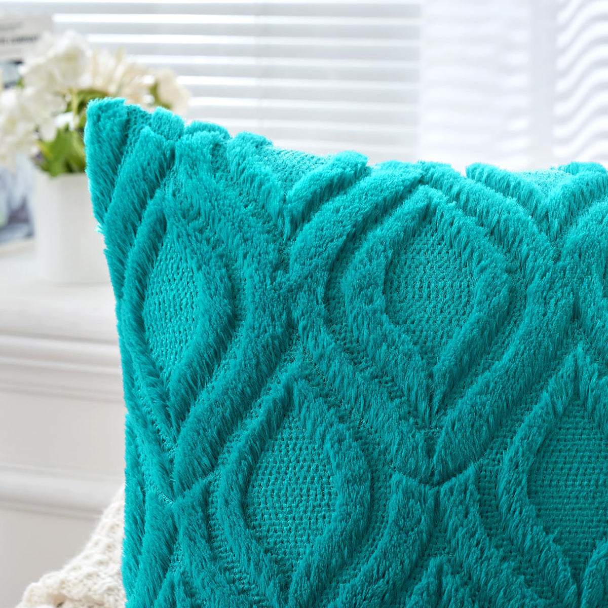 Miulee Teal Throw Pillow Covers 20X20 Inch, Soft Winter Plush Faux Wool Couch Pillow Covers Set Of 2 Decorative Farmhouse Boho Throw Pillows For Sofa Living Room Bed