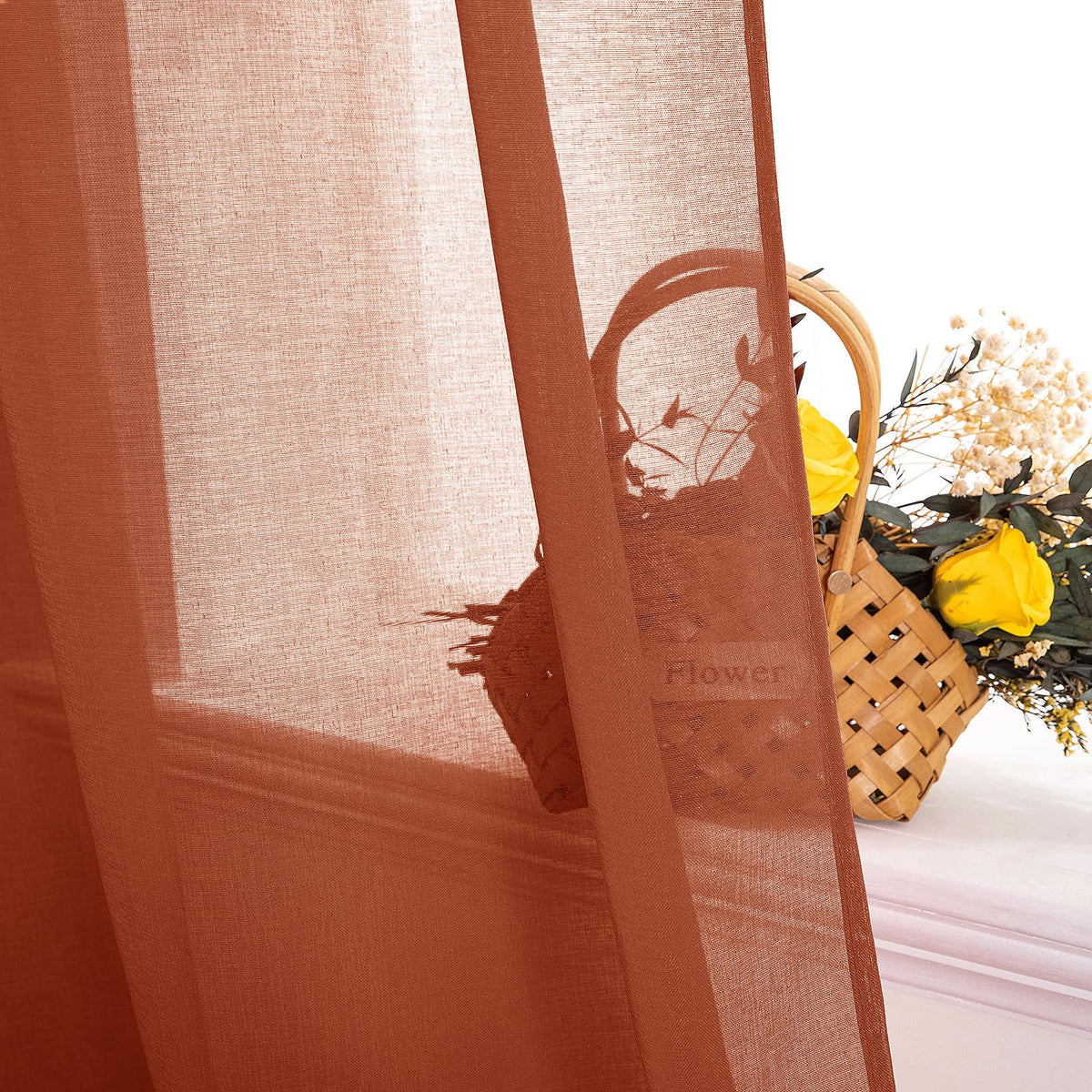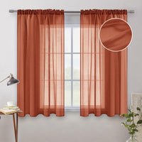 Miulee Terracotta Linen Textured Sheer Curtains 2 Panels For Kitchen/Bedroom/Living Room Semi Transparent Voile Drapes Rust Boho Farmhouse Fall Decor Window Panels Rod Pocket, W 54 X L 54 Inches Long