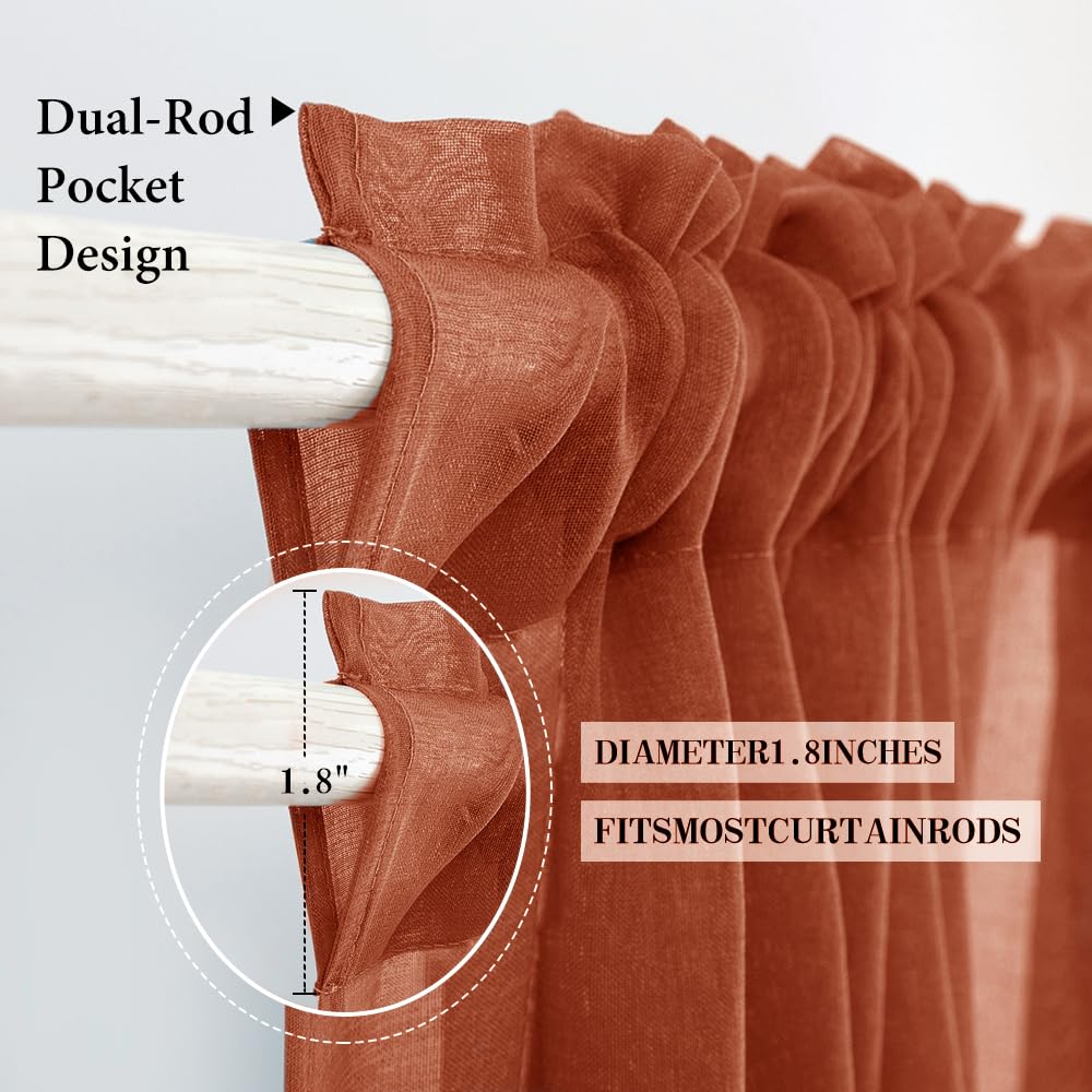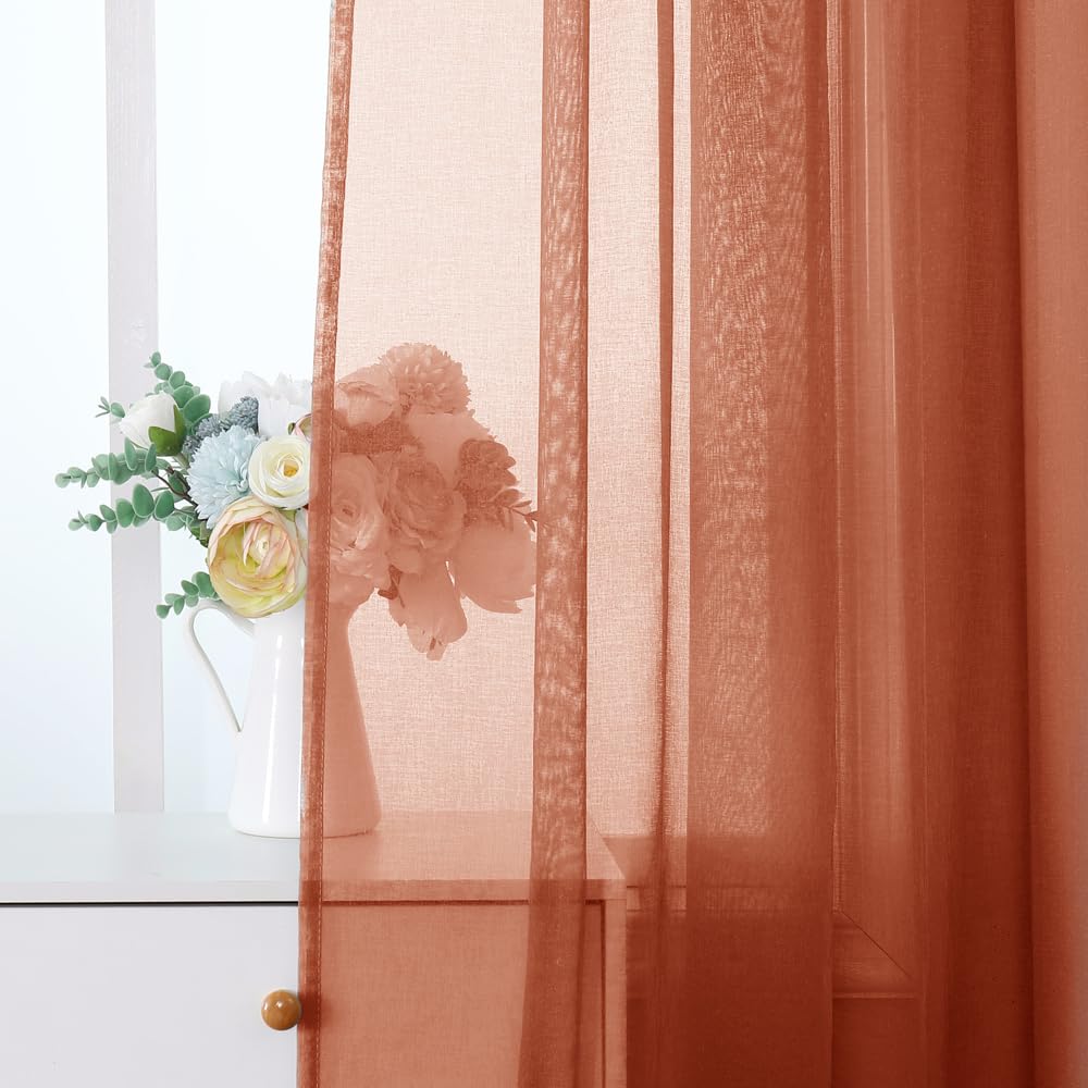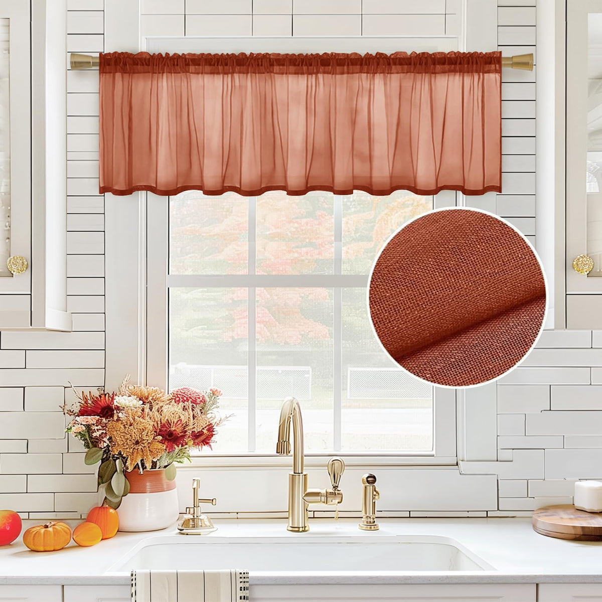 Miulee Terracotta Sheer Valance Linen Textured Look Half Window Curtain, Farmhouse Small Drape For Kitchen Cafe Living Room Rod Pocket Fall Home Decor Valance 1 Panel, 54' W X 18' L