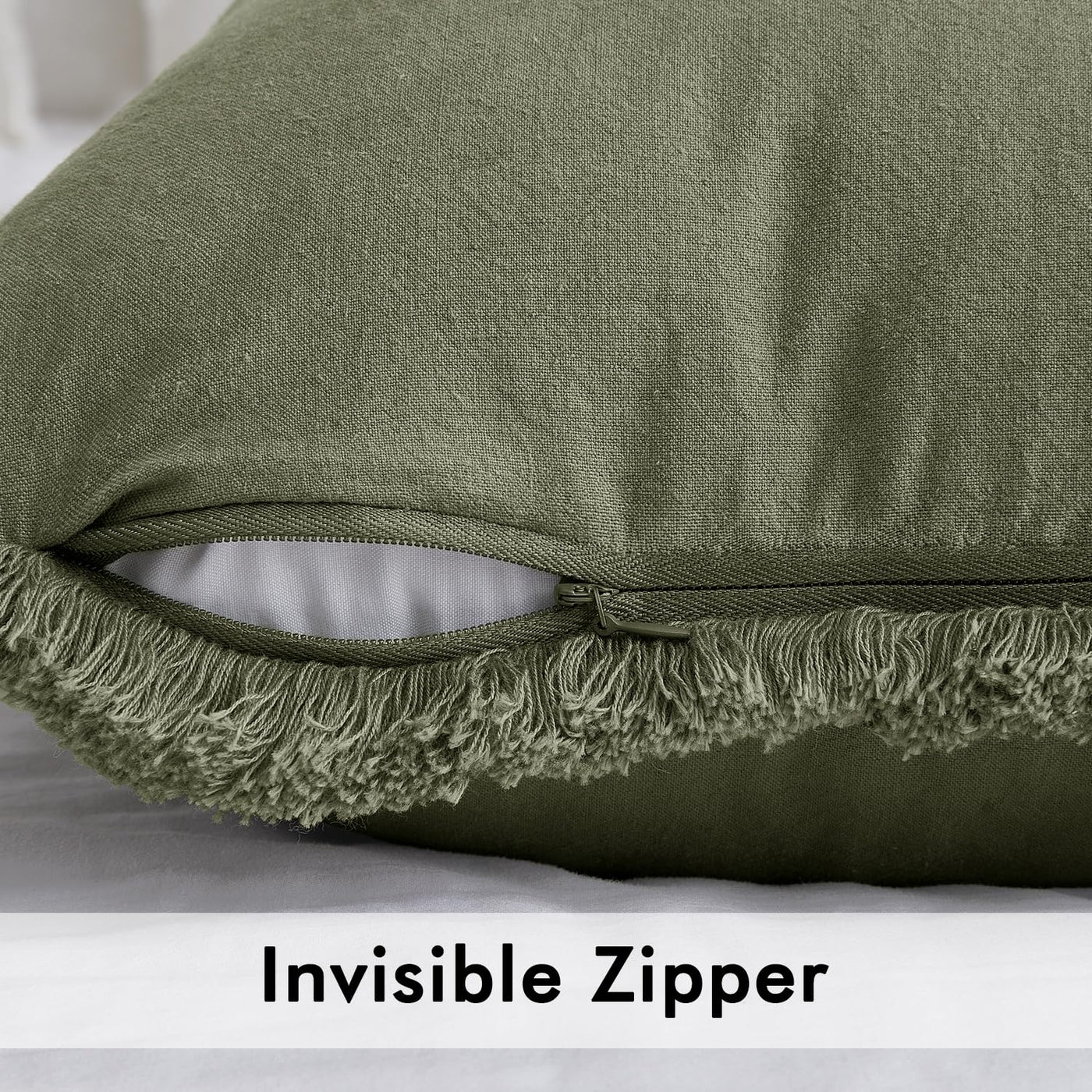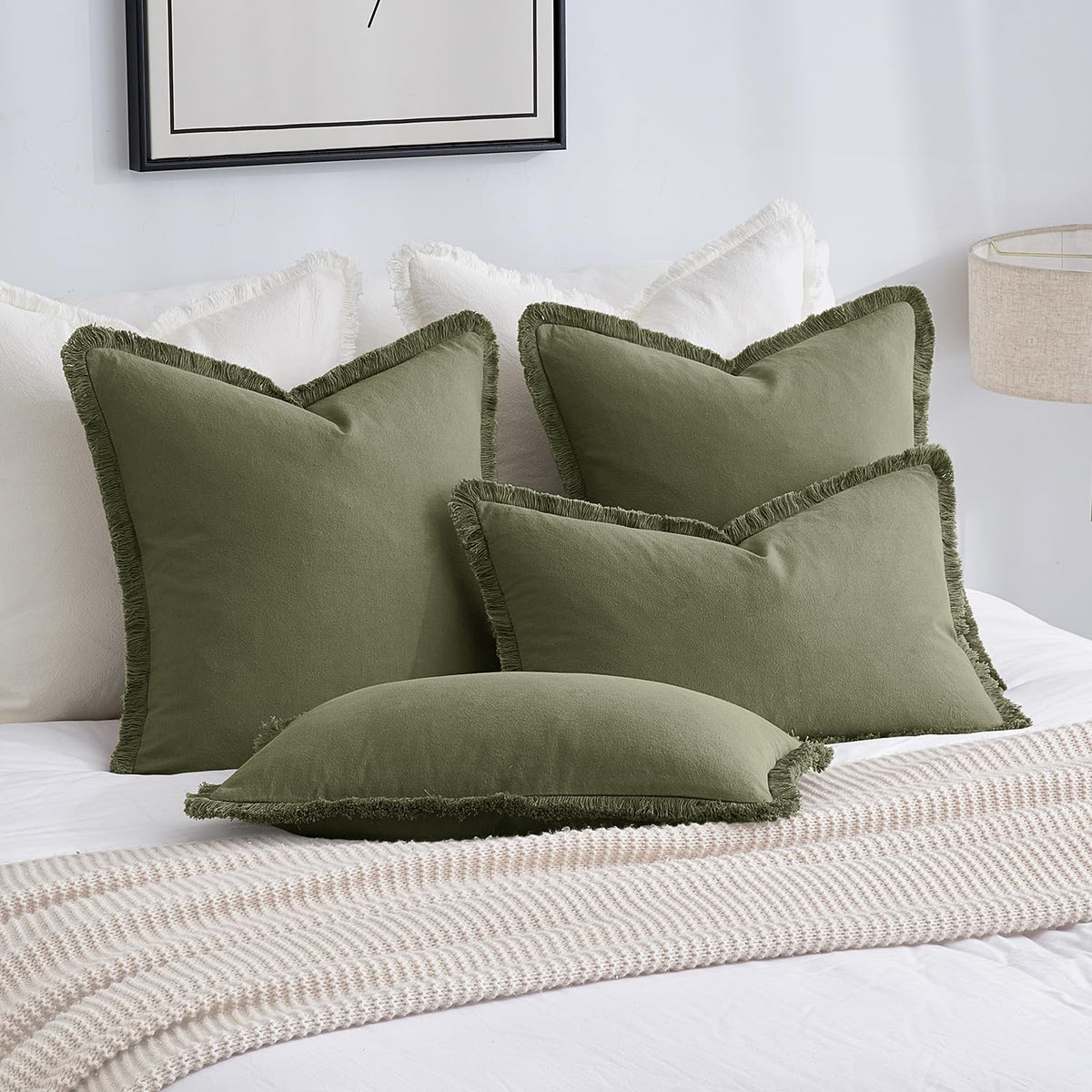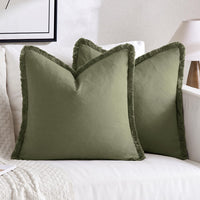 Miulee Throw Pillow Covers Boho Farmhouse 24X24 Set Of 2 Decorative Light Olive Green Couch With Fringe Chic Cotton Pillowcases Home Decor Accents For Cushion Soft Bed Living Room