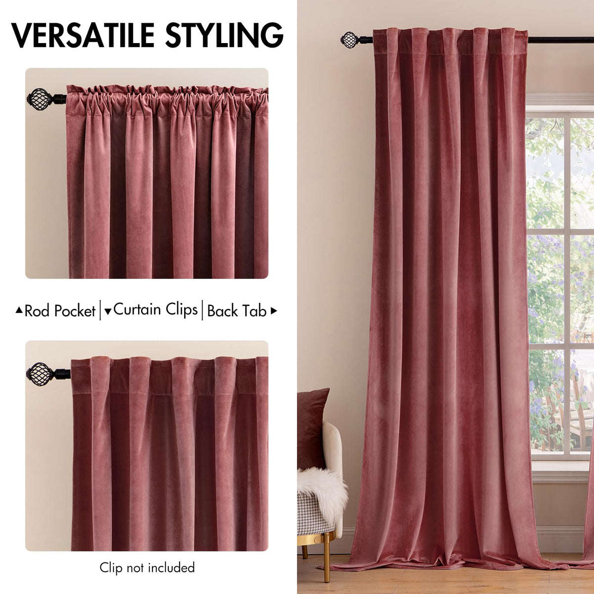 Miulee Velvet Curtains 108 Inches Long 2 Panels - Luxury Blackout Curtains For Bedroom Living Room Thermal Insulated Super Soft Window Drapes Rod Pocket & Back Tab, Dusty Rose Pink