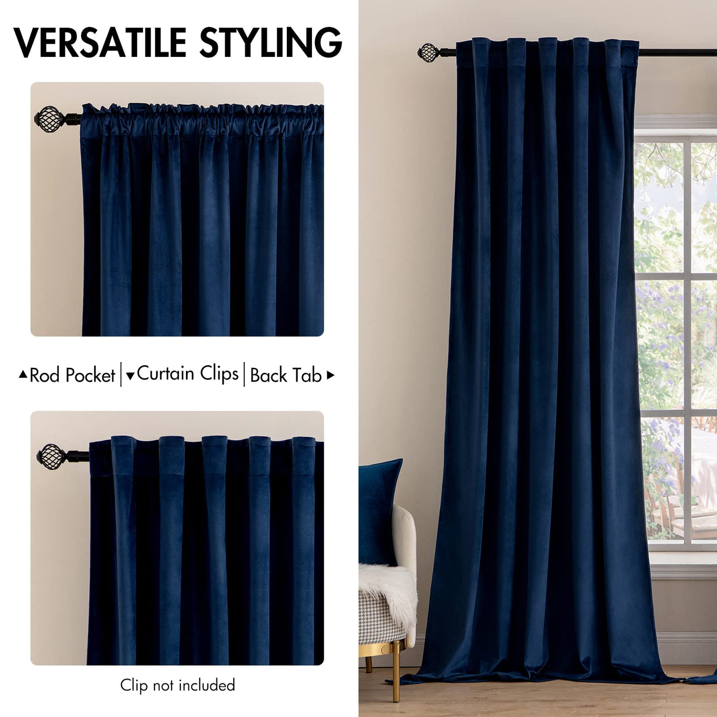 Miulee Velvet Curtains 108 Inches Long 2 Panels - Luxury Blackout Curtains For Bedroom Living Room Thermal Insulated Super Soft Window Drapes Rod Pocket & Back Tab, Royal Blue