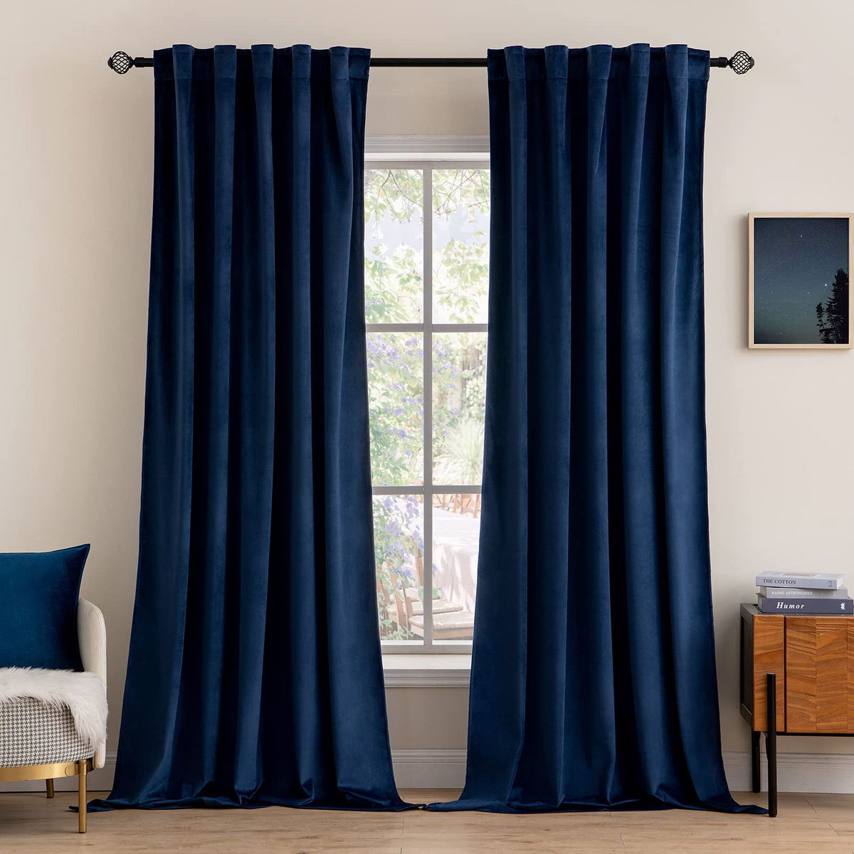WELL MADE: Sold as 2 panels, each panel is W52' x L108', and W104' x L108' in total. Can be hung separately, or hung together with sheer curtains in MIULEE. HANGING OPTIONS: Each curtain panel has 2-in-1 top style design: rod pocket and back tab. With 3-inch inner diameter fit most standard rod. Curtains also can be hung with clip rings. 3 ways meet your various needs. LUXURY APPEARANCE: MIULEE velvet curtains are silky smooth, super soft, draped and heavyweight. They can be easily integrated into any style setting to make your room look more refined and elegant. FUNCTION: Craft from thick velvet, curtains can block 70-80% of the light (dark color works better). Also, these drapes can keep heat down in summer or keep cold out in winter to achieve smart energy saving. And these panels can provide privacy, reduce noise, which help to create a quiet sleeping environment EASY CARE: Machine washable in cold water, gentle cycle, tumble dry. Cool iron if needed. Use steam iron on low heat from the back to remove creases/wrinkles. Do Not Bleach.
