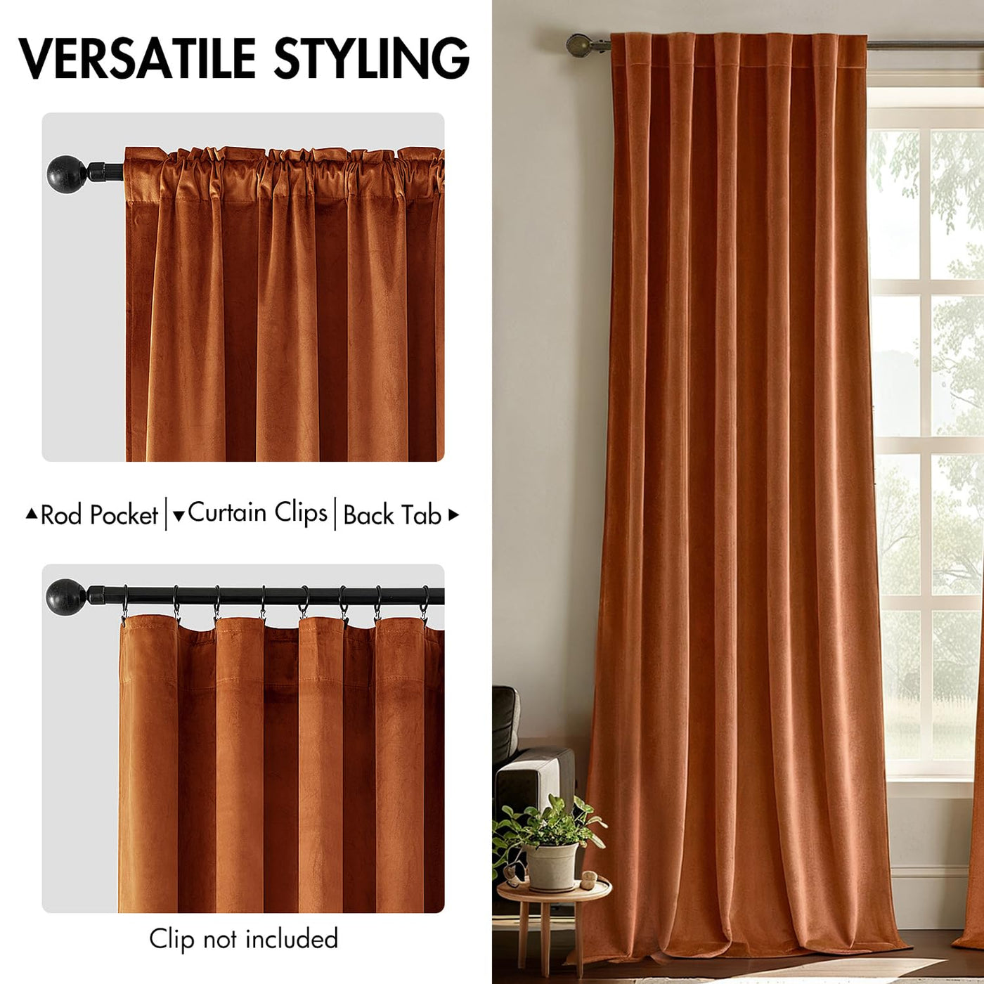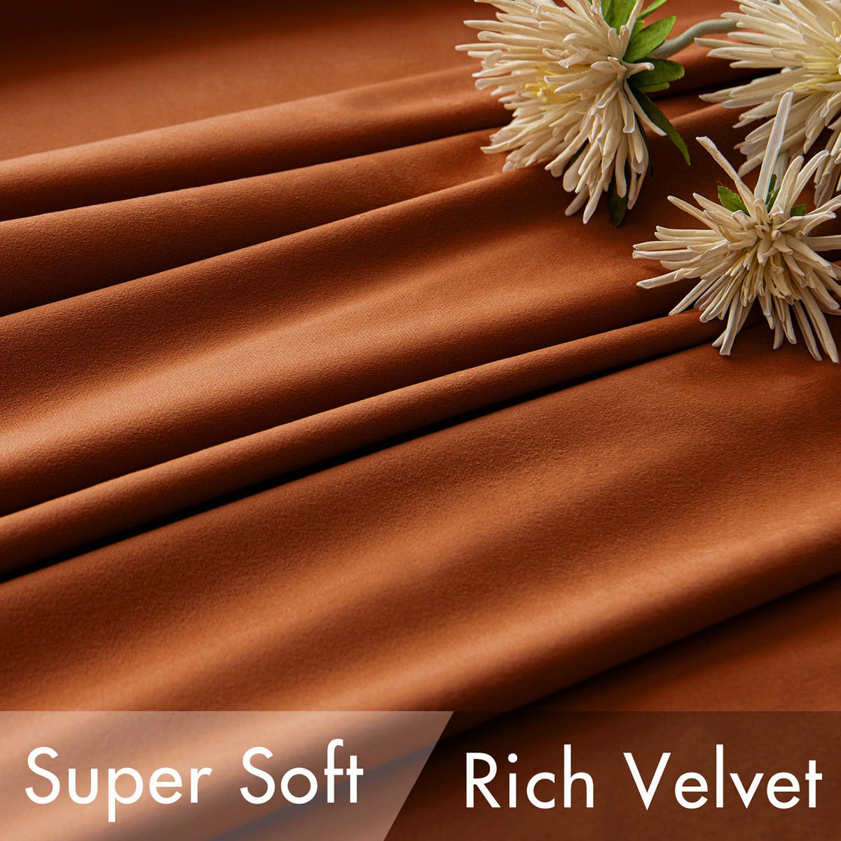 Miulee Velvet Curtains 90 Inches Long - Luxury Room Darkening Curtains For Bedroom Living Room Thermal Insulated Super Soft Window Drapes Back Tab & Rod Pocket, Fall Burnt Orange, 2 Panels