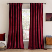 WELL MADE: Sold as 2 panels, each panel is W52' x L96', and W104' x L96' in total. Can be hung separately, or hung together with sheer curtains in MIULEE. HANGING OPTIONS: Each curtain panel has 2-in-1 top style design: rod pocket and back tab. With 3-inch inner diameter fit most standard rod. Curtains also can be hung with clip rings. 3 ways meet your various needs. LUXURY APPEARANCE: MIULEE velvet curtains are silky smooth, super soft, draped and heavyweight. They can be easily integrated into any style setting to make your room look more refined and elegant. FUNCTION: Craft from thick velvet, curtains can block 70-80% of the light (dark color works better). Also, these drapes can keep heat down in summer or keep cold out in winter to achieve smart energy saving. And these panels can provide privacy, reduce noise, which help to create a quiet sleeping environment EASY CARE: Machine washable in cold water, gentle cycle, tumble dry. Cool iron if needed. Use steam iron on low heat from the back to remove creases/wrinkles. Do Not Bleach.