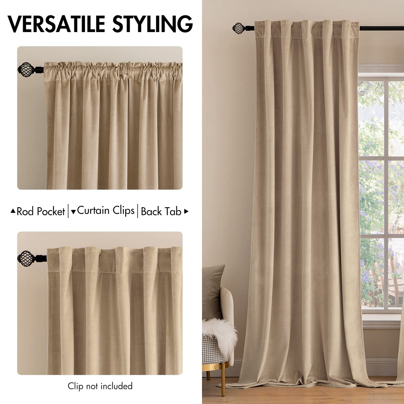 Miulee Velvet Curtains 96 Inches 2 Panels - Luxury Blackout Curtains For Bedroom Living Room Thermal Insulated Super Soft Window Drapes Rod Pocket & Back Tab, Camel Beige, W52 X L96 Inches