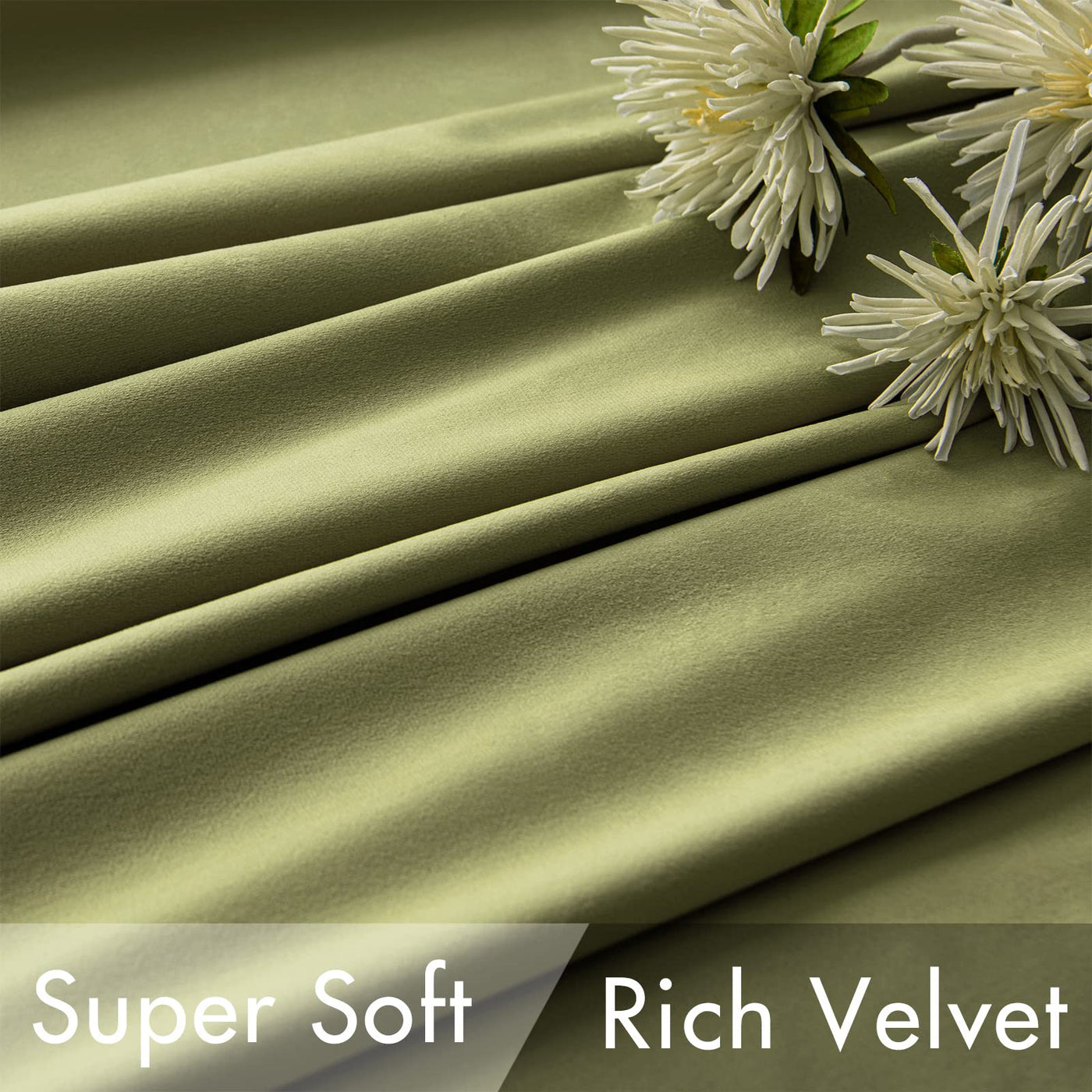 Miulee Velvet Curtains 96 Inches 2 Panels - Luxury Room Darkening Curtains For Bedroom Living Room Thermal Insulated Super Soft Window Drapes Rod Pocket & Back Tab, Moss Green, W52 X L96 Inches