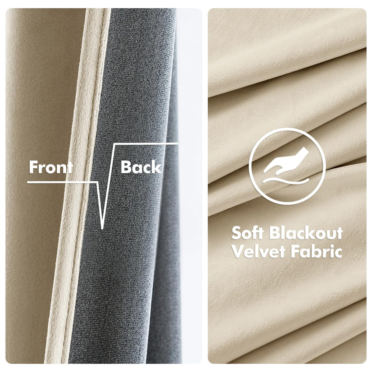 Miulee Velvet Curtains Beige Elegant Grommet Curtains Thermal Insulated Soundproof Room Darkening Black Out Curtains/Drapes For Classical Living Room Bedroom Decor 52 X 108 Inch Set Of 2