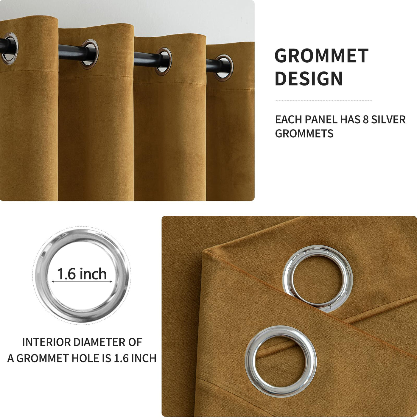 WELL MADE: Sold as 2 panels, each measuring 52'W x 84'L (from top edge of installed rod to bottom). Grommet top designed curtains easy to slide. FINE DETAIL: Interior diameter of grommet hole is 1.6 inch. Sewn well at each edge of the curtain. LUXURY APPEARANCE: MIULEE velvet curtains are silky smooth, soft, draped and feel very good to the touch. They can be easily integrated into any style setting to make your room look more refined and elegant. FUNCTION: Blackout curtains can block 60-70% of the light (the darker color works better), and can also reduce noise and keep heat down in summers or keep cold out in winters to achieve smart energy saving and provide privacy. KINDLY REMIND: Due to the production process, curtains in different light intensity and angle may show plush silver reflective. If wrinkled, use a steamer iron on the back and front of the curtain at low temperature. Machine washable in cold water and tumble dry.