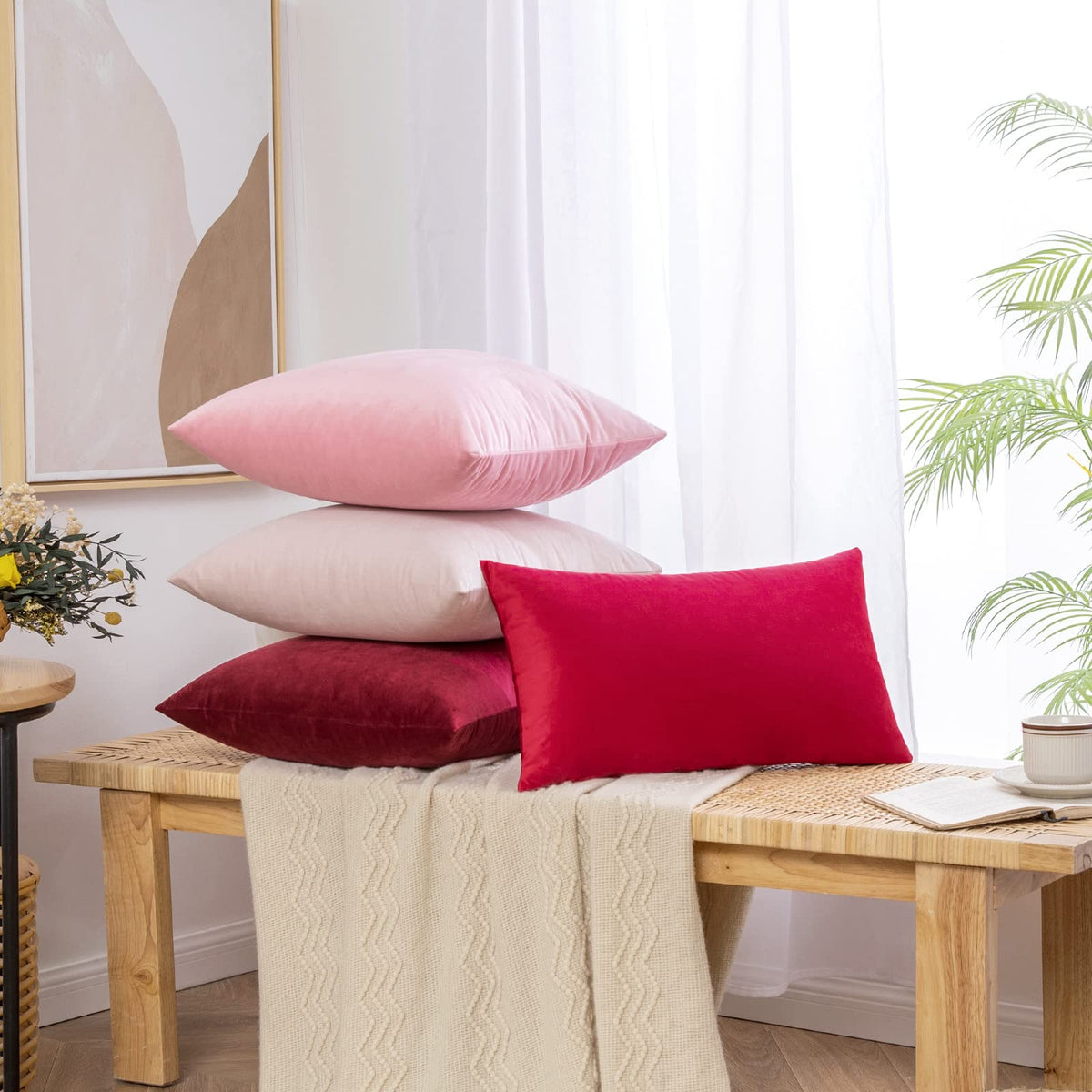 Miulee Velvet Pillow Cover Christmas Decorative Square Pillowcase Soft Solid Cushion Case For Sofa Bedroom Car 12 X 20 Inch Red