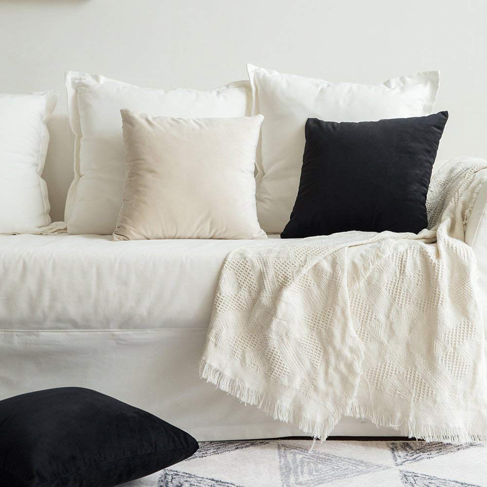 Miulee Velvet Pillow Cover Decorative Halloween Square Pillowcase Soft Solid Cushion Case For Sofa Bedroom Car 26 X 26 Inch Blac