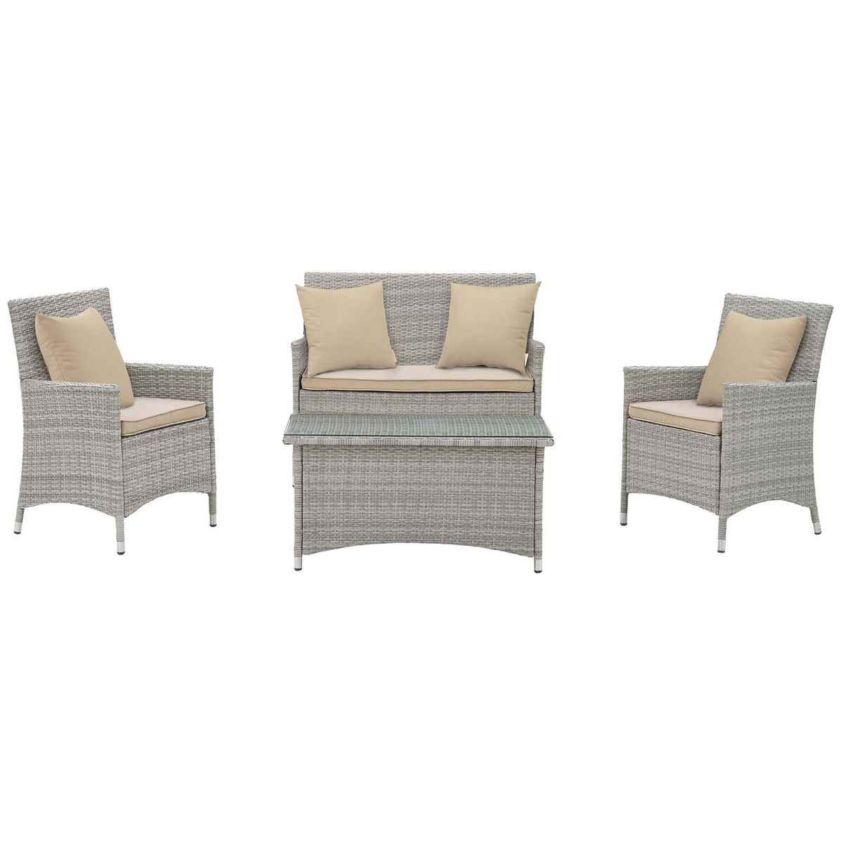 Modway Bridge Wicker Rattan 4-Piece Outdoor Patio Furniture Set In Light Gray Beige