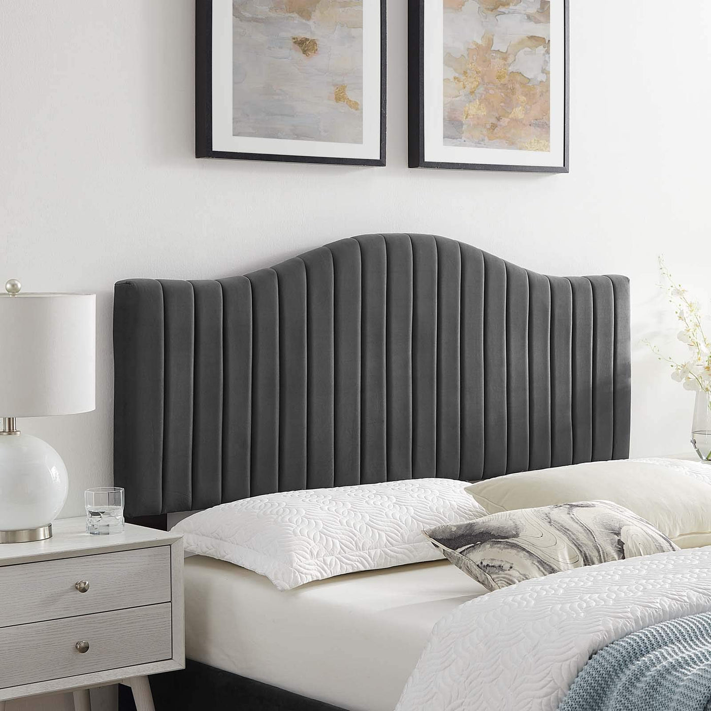 Modway Brielle Channel Tufted Performance Velvet Twin Headboard in Charcoal