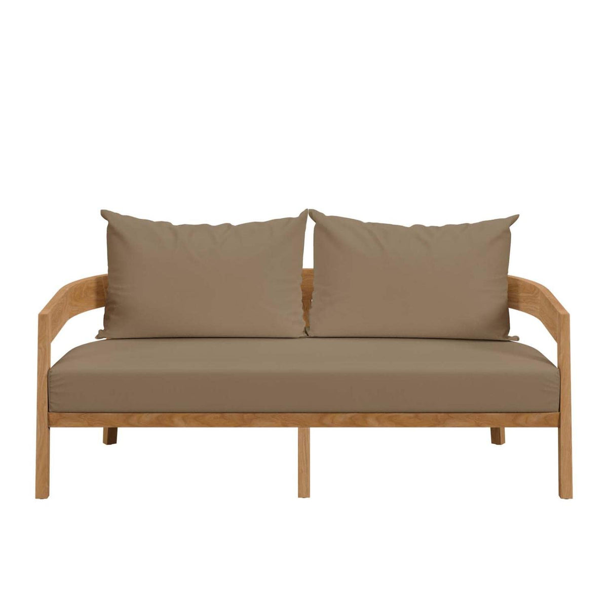 Modway Brisbane Modern Teak Wood/Fabric Patio Loveseat In Light Brown/Natural