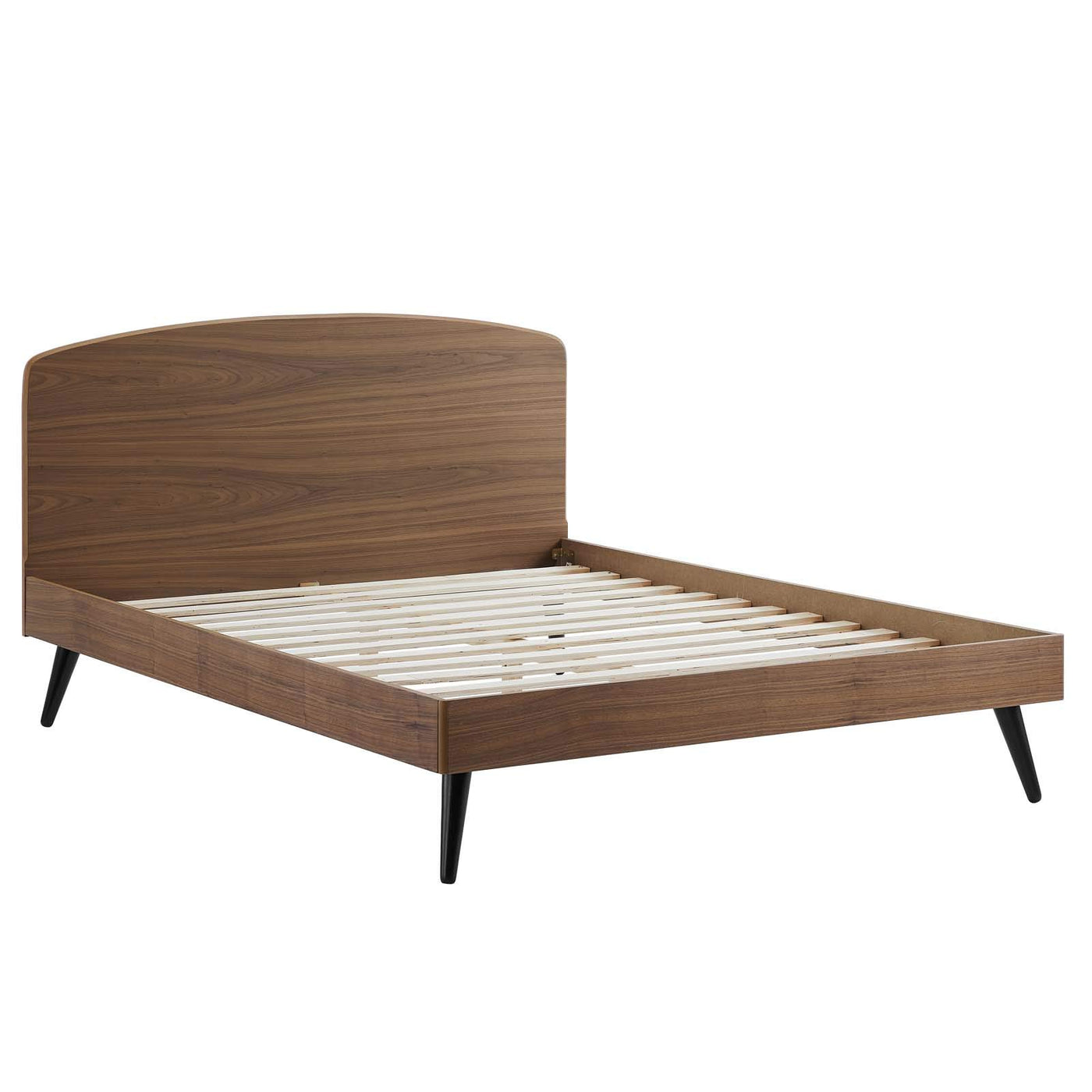 Influence Master Bedroom Or Guest Bedroom Decor With The Mid-Century Style Of The Bronwen Wood Queen Platform Bed. Featuring A Simple Arching Queen Headboard, This Wood Bed Frame Is Rich In Modern Style And Organic Aesthetics With Its Beautiful Wood Grain. Creating A Lasting Mattress Foundation For Memory Foam, Innerspring, Hybrid, And Latex Mattresses, This Headboard Is Crafted With Solid Rubberwood And Mdf With Wood Grain Veneer. A Lvl Wood Slat Support System Complete With A Reinforced Center Beam And Support Legs Eliminates The Need For A Box Spring And Allows For Healthy Air Circulation. Assembly Required. Mattress Not Included. Bed Weight Capacity: 601 Lbs. Product Dimensions: Overall Product Dimensions: 82.5"L X 64"W X 40.5"H; Headboard Dimensions: 0.5"L X 64"W X 40.5"H; Side Rail Dimensions: 81"L X 62.5 - 64"W X 15"H; Footboard Dimensions: 0.5"L X 64"W X 15"H; Set Includes: One - Bronwen Queen Platform Bed