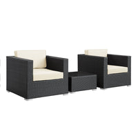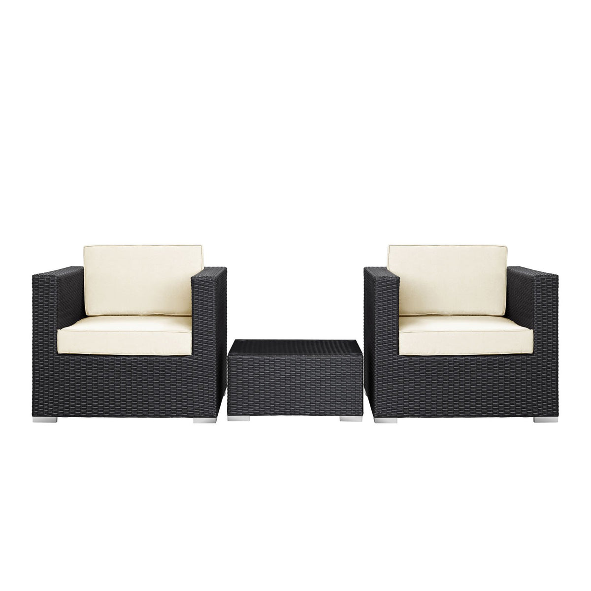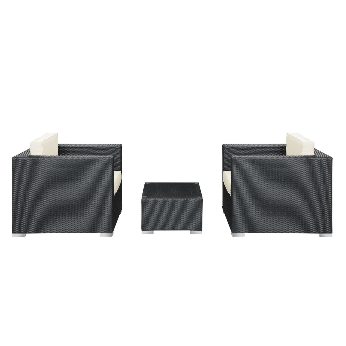 Modway Burrow 3-Piece Espresso Patio Sectional Set With White Cushions