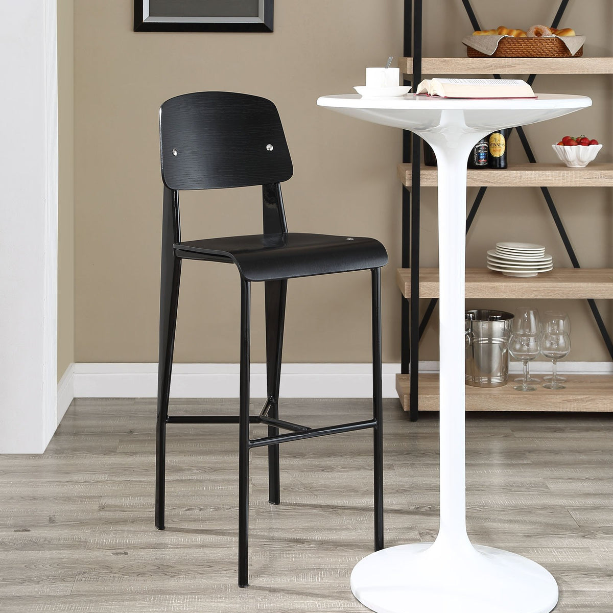 Modway Cabin Modern Farmhouse Wood and Metal Counter Bar Stool in Black