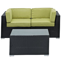 Modway Camfora Outdoor Wicker Patio 3-Piece Espresso Sofa Set With Peridot Cushions