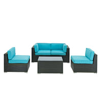 Simple And Serviceable, The Camfora Is A Great Choice For Any Backyard. Classically Styled Furniture Crafted Out Of All Weather Materials Meant To Last, This Set Will Please Year After Year. Enjoy Some Quality Time In The Fresh Air With The Camfora Set. Set Includes: One - Camfora Outdoor Wicker Patio Coffee Table One - Camfora Outdoor Wicker Patio Left Arm Section One - Camfora Outdoor Wicker Patio Right Arm Section Two - Camfora Outdoor Wicker Patio Armless Sections Product Dimensions: Coffee Table Dimensions: 35.5"L X 20"W X 16"H Left Section Dimensions: 33.5"L X 29.5"W X 27.5"H Right Section Dimensions: 33.5"L X 29.5"W X 27.5"H Armless Section Dimensions: 33.5"L X 31.5"W X 27.5"H Seat Height: 12"H Backrest Height: 27.5"H Armrest Dimensions: 4"W X 27.5"H Cushion Depth: 4"H Overall Product Dimensions: 126"L X 65"W X 27.5"H.