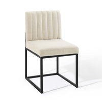 Modway Carriage Channel Tufted Sled Base Upholstered Fabric Dining Chair, Black Beige
