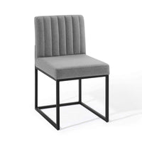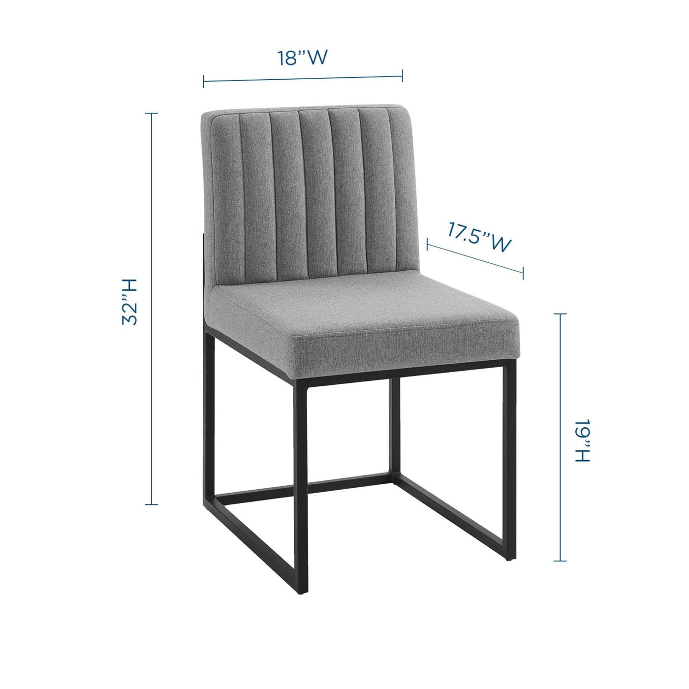 Modway Carriage Channel Tufted Sled Base Upholstered Fabric Dining Chair, Black Light Gray