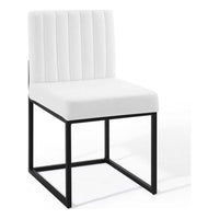 Modway Carriage Channel Tufted Sled Base Upholstered Fabric Dining Chair, Black White