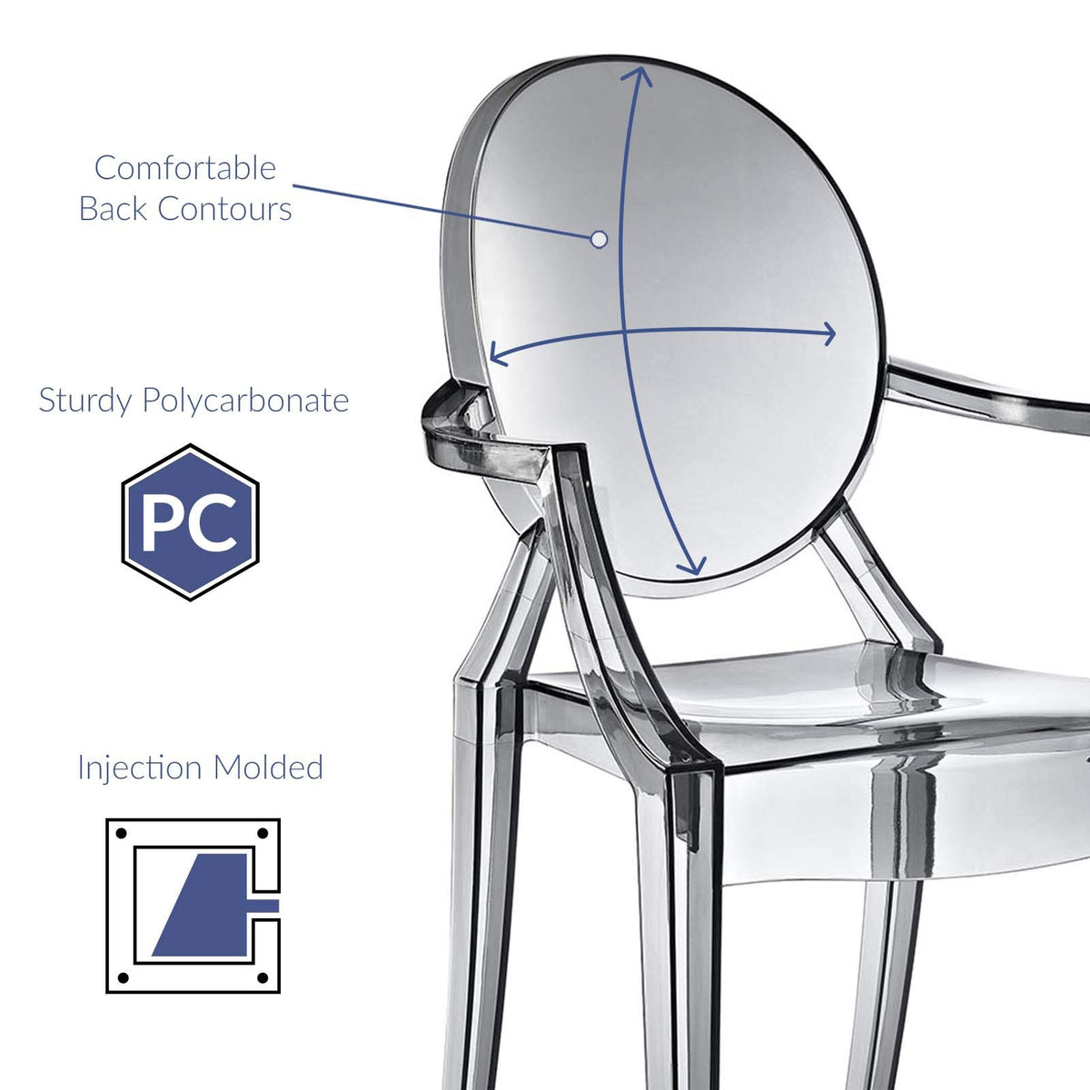 Modway Casper Modern Acrylic Stacking Kitchen and Dining Room Arm Chair in Smoke - Fully Assembled