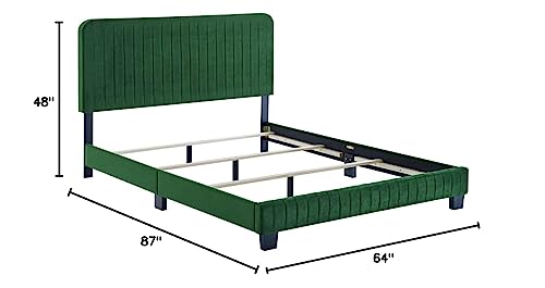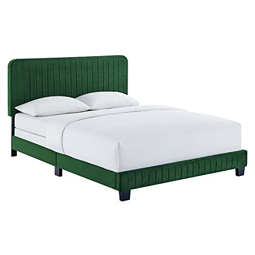 Elevate your master bedroom or guest bedroom style with the luxe texture and glam deco elegance of the Celine Queen Bed. Adorned with channel tufted detail, the queen size headboard of this upholstered bed is padded in dense foam to offer supportive comfort while sitting up resting, relaxing, reading, or watching TV. Upholstered in stain-resistant performance velvet, this queen size bed features support legs for added durability. A sturdy mattress foundation, this queen size bed accommodates a variety of mattress styles including innerspring, memory foam, and latex with the use of a box spring. Assembly required. Weight Limit: 800 lbs.