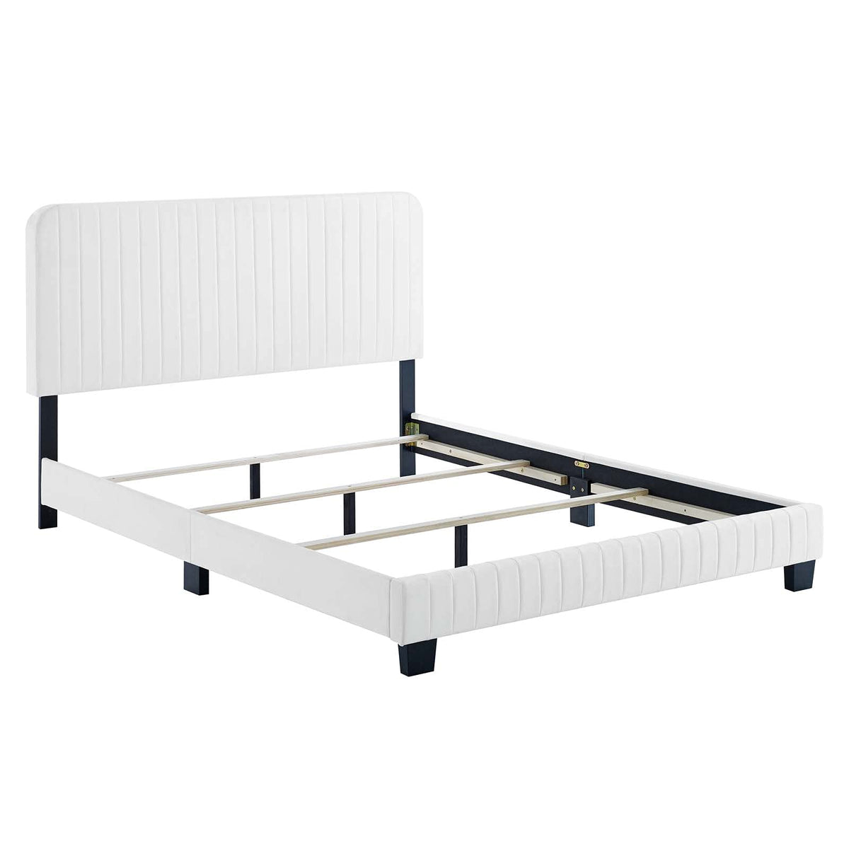 Modway Celine Channel Tufted Performance Velvet Bed, Queen, White