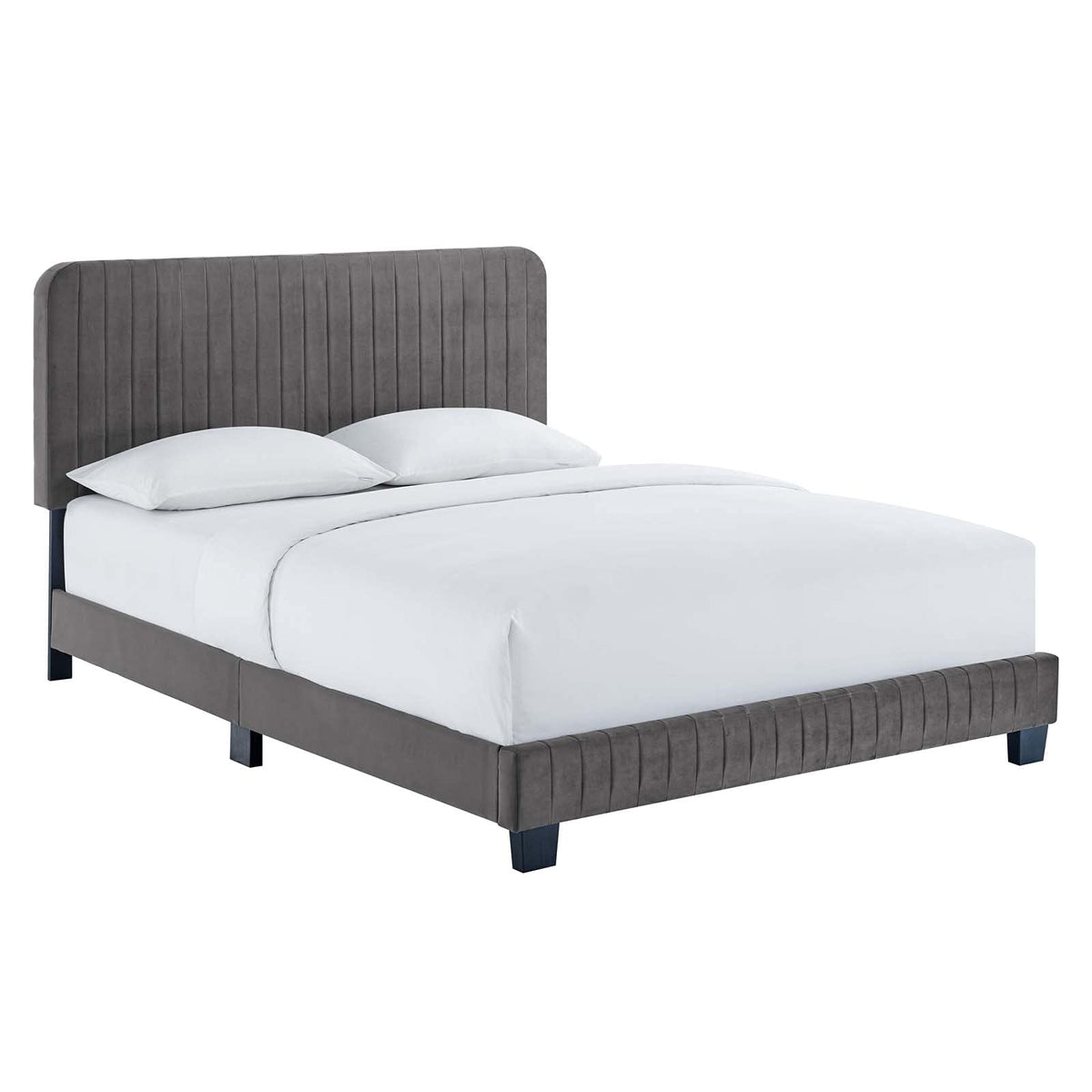 Modway Celine Channel Tufted Performance Velvet Full Platform Bed in Gray