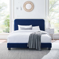 Modway Celine Channel Tufted Performance Velvet Full Platform Bed in Navy