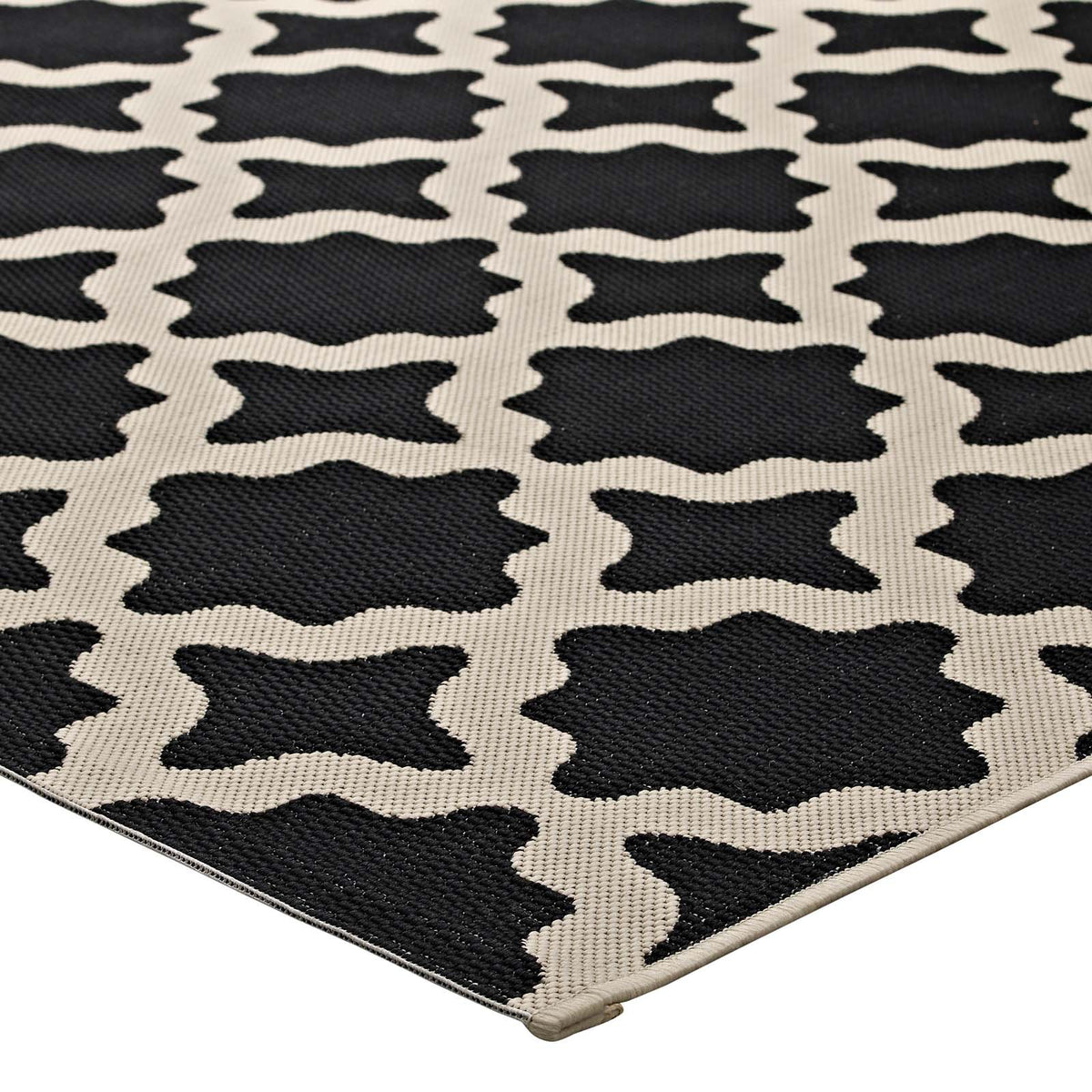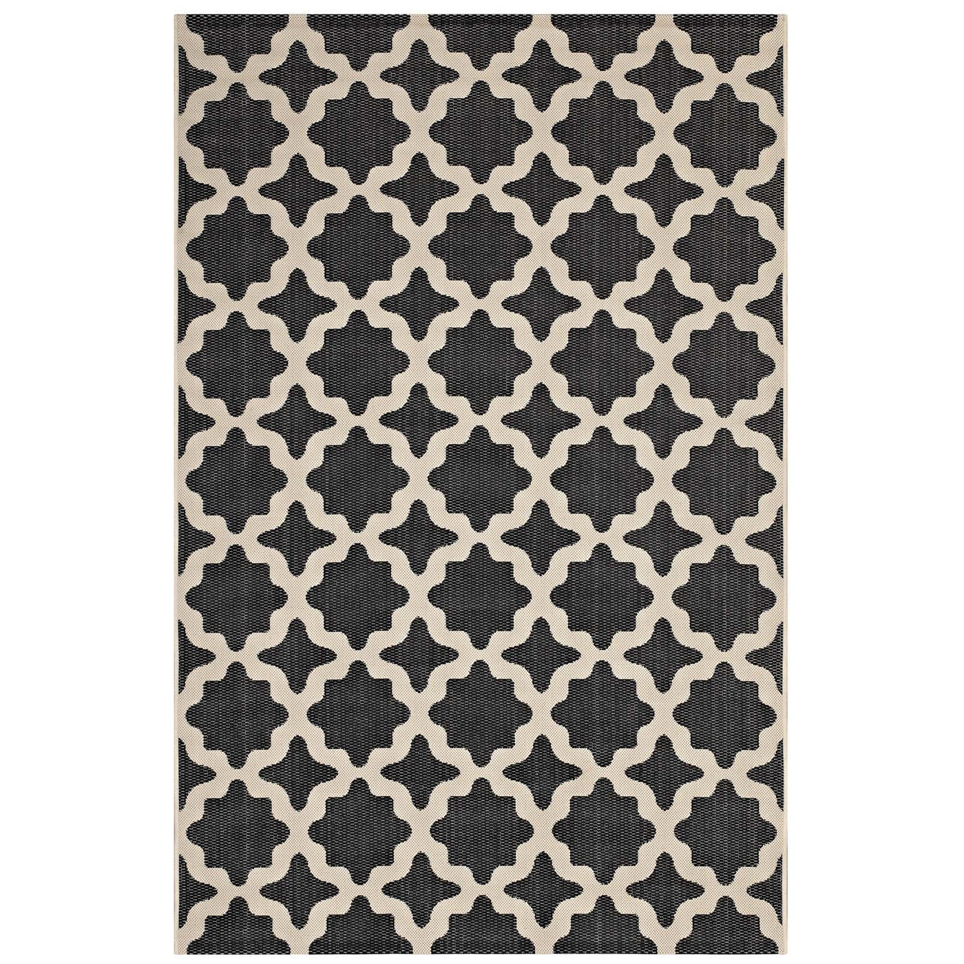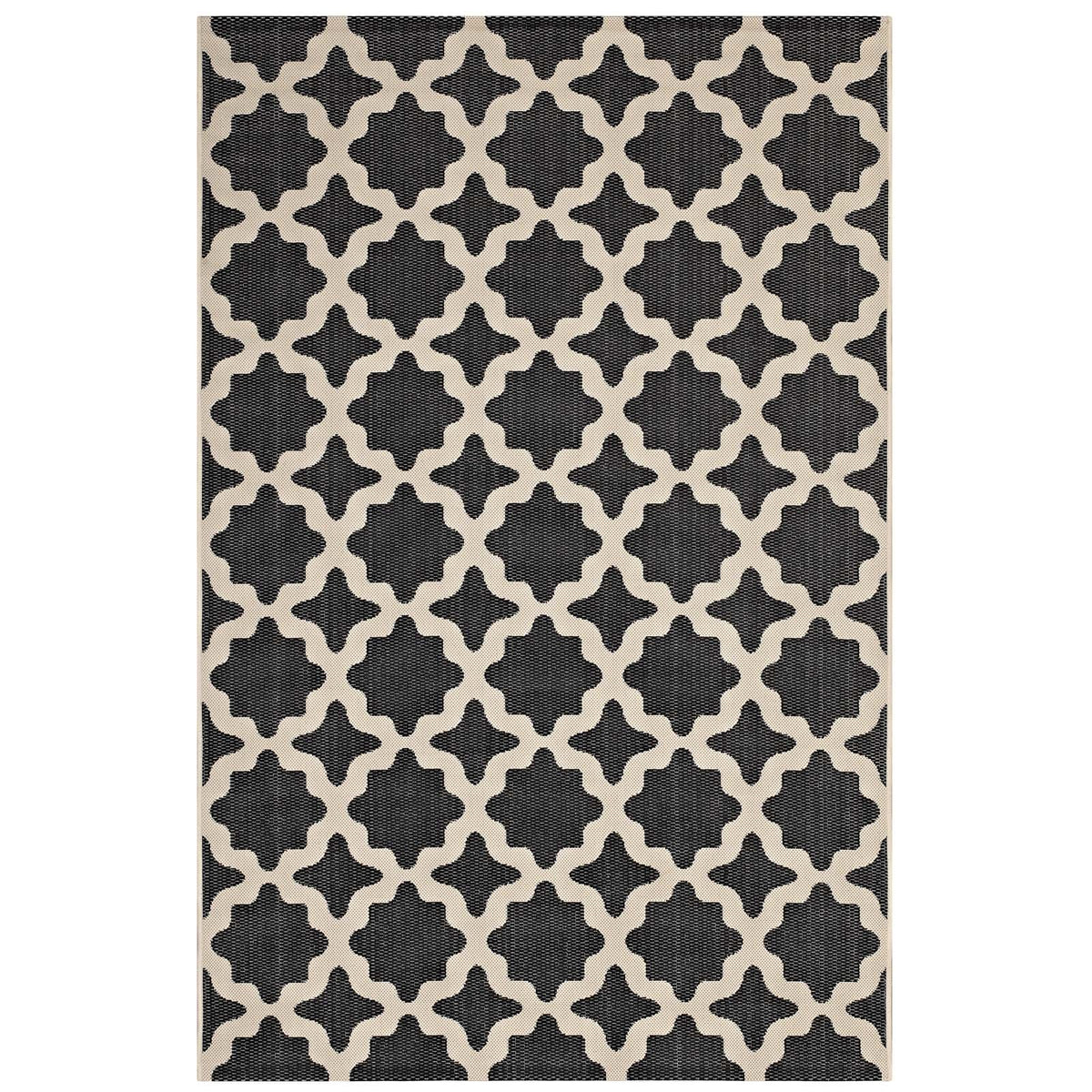 Modway Cerelia Moroccan Trellis 8X10 Indoor And Outdoor In Black And Beige