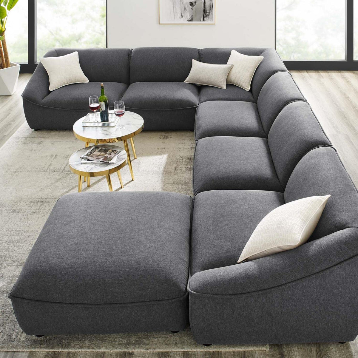 Indulge In Cozy Relaxation In The Comfort Of Your Own Home With The Comprise Upholstered 7-Piece Sectional Sofa. A Casual Design Accented With French Piping Details, This Sectional Sofa Features Dense Foam Padding, Soft Polyester Upholstery And A Pocket Coil Spring System To Offer A Premium Seating Experience. Solidly Constructed With Solid Wood And Plywood, This Upholstered Sofa Rests Atop Sturdy Rubberwood Legs With Secure Connectors Between Modular Pieces. Create A Custom Living Room Or Lounge Area With The Comprise Living Room Furniture Collection. Set Includes: 1 Left-Arm Chair, 1 Right-Arm Chair, 1 Corner Chair, 3 Armless Chairs, 1 Ottoman