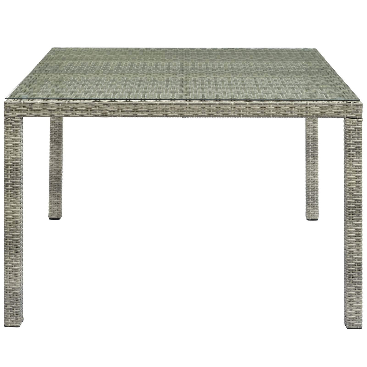 Refresh your alfresco space with the Conduit Outdoor Patio Collection. Bringing transitional style with contemporary modern flair to any outdoor area, Conduit 47” Square Patio Dining Table features a powder-coated aluminum frame wrapped in UV-resistant synthetic wicker rattan. A tempered glass tabletop provides a smooth, easy-to-clean surface ideal for dining and entertaining. All-weather and long lasting, this versatile outdoor dining table creates a serene setting for your morning tea, sunny lunch, sunset cocktail, and everything in between.