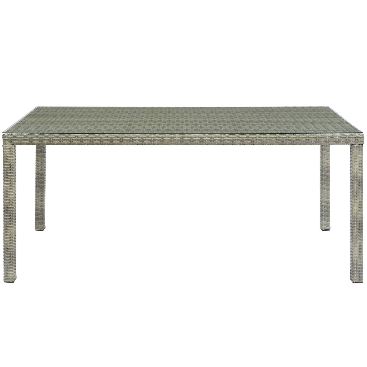 Refresh your alfresco space with the Conduit Outdoor Patio Collection. Bringing transitional style with contemporary modern flair to any outdoor area, Conduit 70” Patio Dining Table features a powder-coated aluminum frame wrapped in UV-resistant synthetic wicker rattan. A tempered glass tabletop provides a smooth, easy-to-clean surface ideal for dining and entertaining. All-weather and long lasting, this versatile outdoor dining table creates a serene setting for your morning tea, sunny lunch, sunset cocktail, and everything in between.
