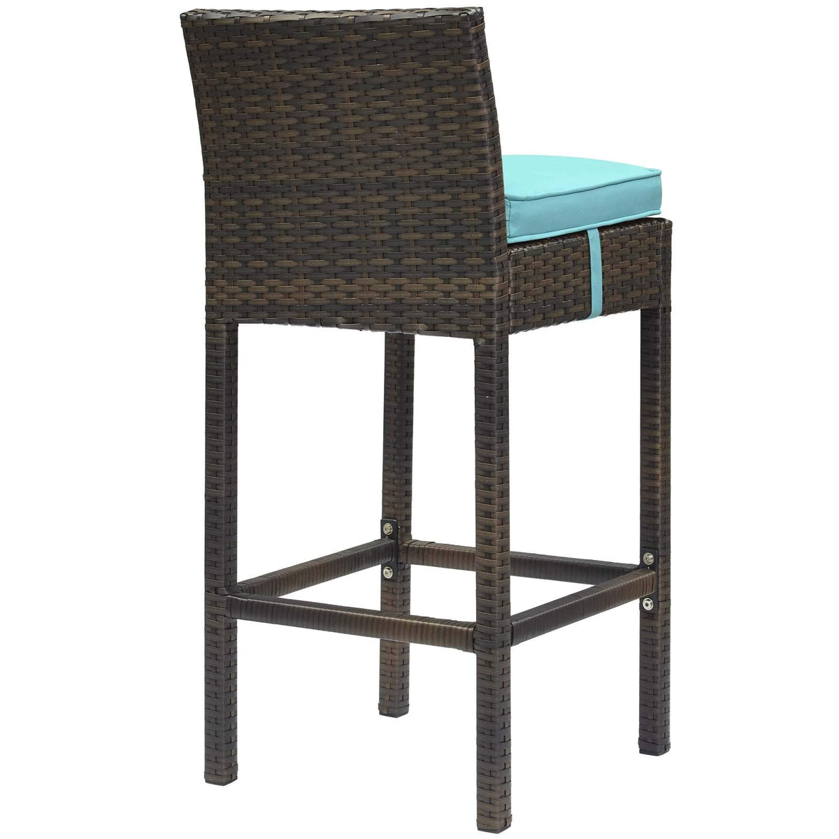 Modway Conduit Wicker Rattan Outdoor Patio Bar Stool with Cushion in Brown Turquoise