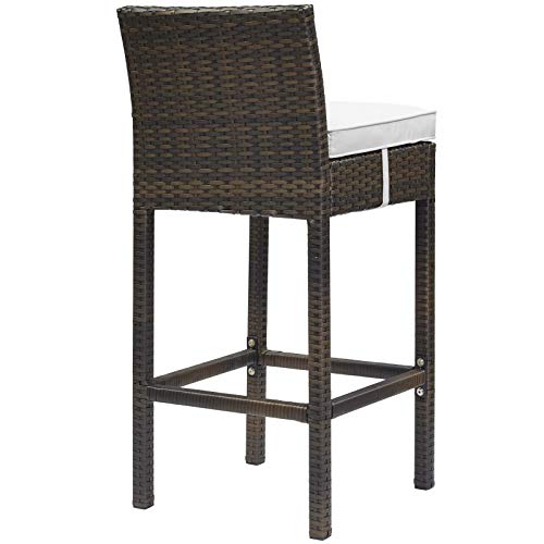 Modway Conduit Wicker Rattan Outdoor Patio Bar Stool with Cushion in Brown White