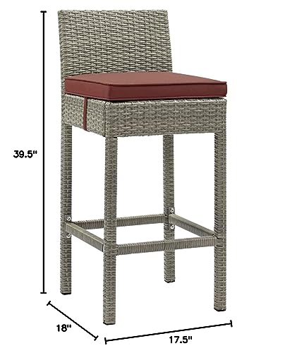 Modway Conduit Wicker Rattan Outdoor Patio Bar Stool With Cushion In Light Gray Currant