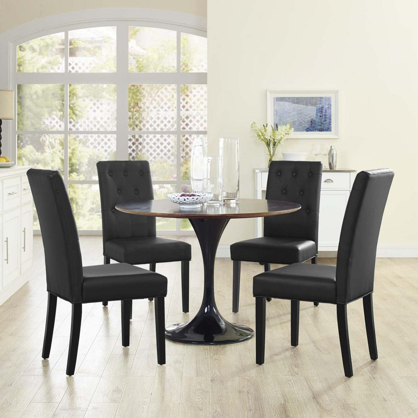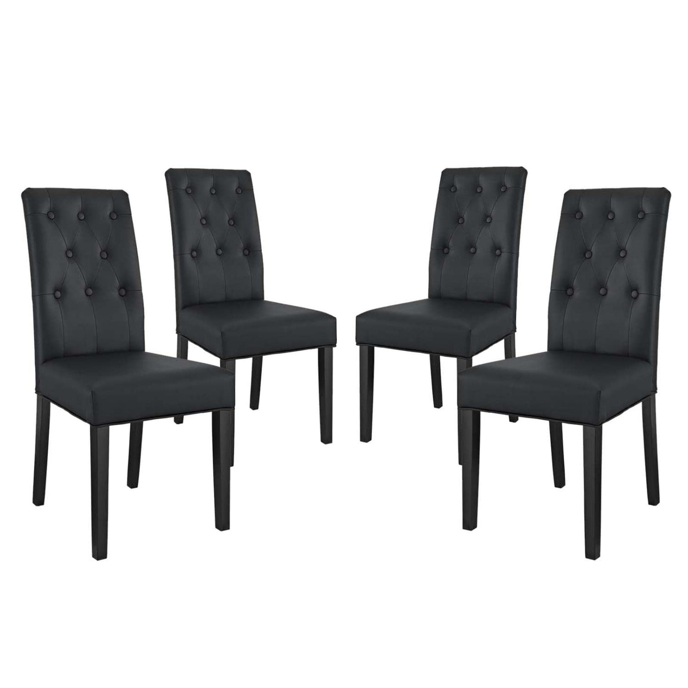 Modway Confer Modern Tufted Faux Leather Upholstered Parsons Four Dining Chairs In Black